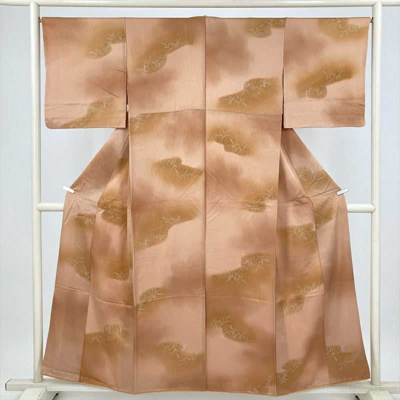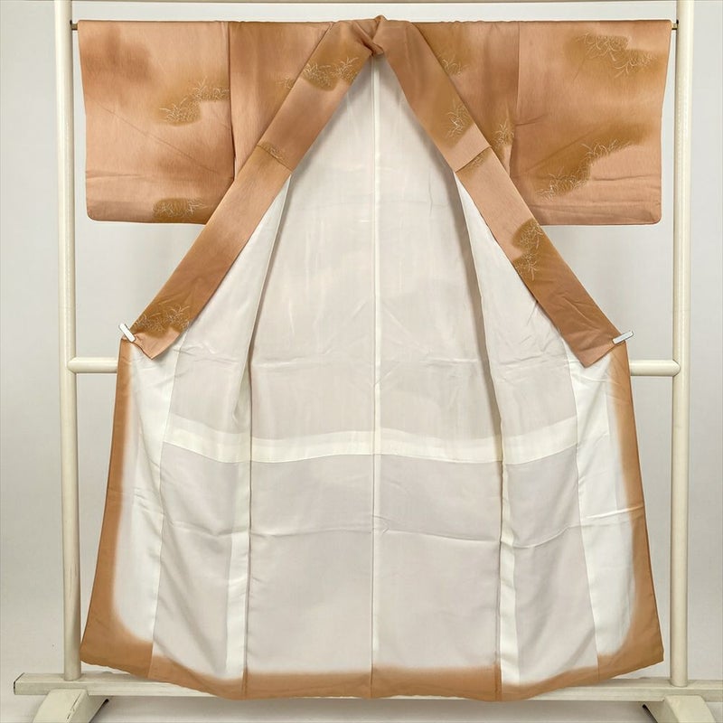 (中古) 小紋 薄茶 カジュアル 薄 袷 絹【身丈】150cm【裄丈】67cm