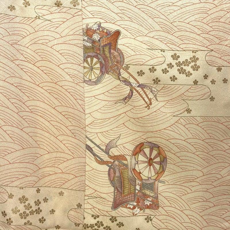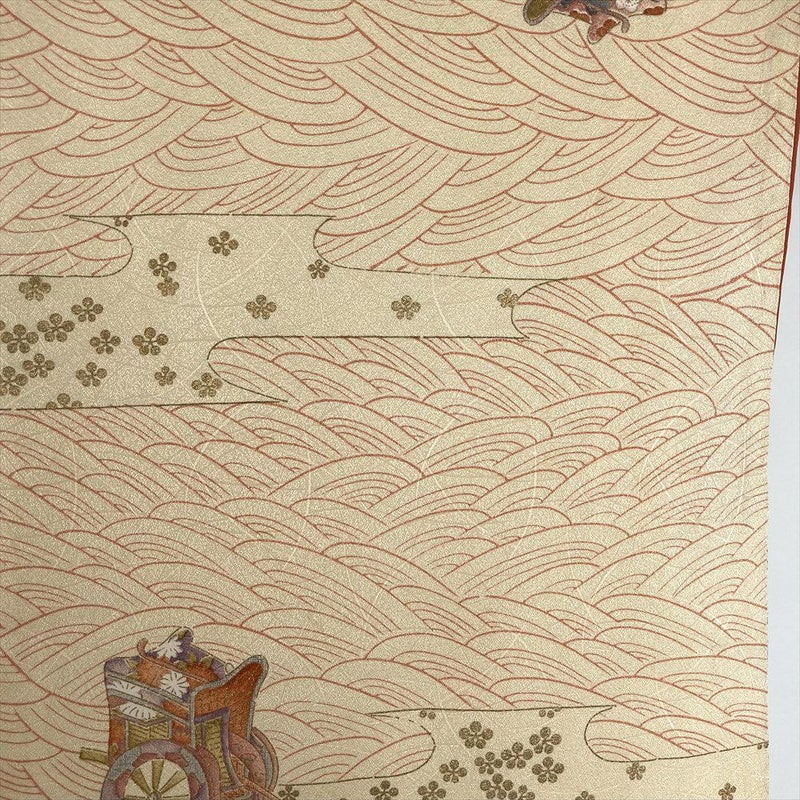 【色柄】卵色 オレンジ カジュアル 地紋織り 染め 金彩 御所車 流水 霞