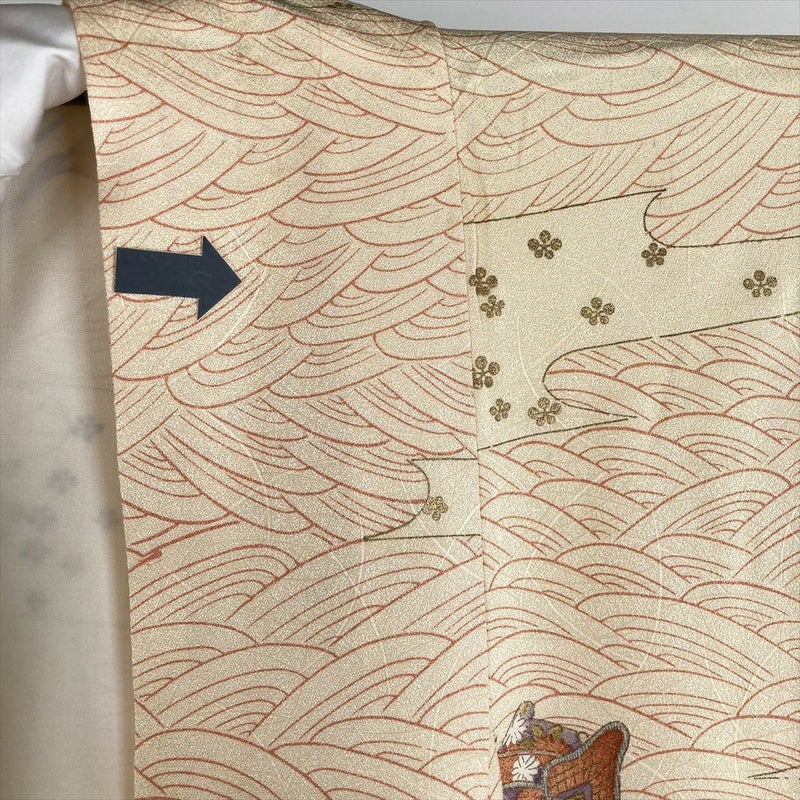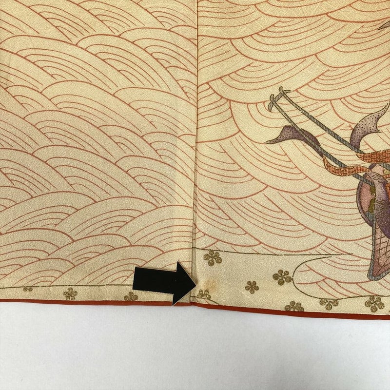 小紋は、柄を繋げず同じ柄が繰り返し染められています。 柄は大小あるものの一目見て分かる程度の大きさで、カジュアルなお出かけや柄付けによって少しおしゃれをしていきたい場面など巾広いシーンでお楽しみいただけます。右後身、衿、袖口にシミ汚れがございます。保存臭がややございます。