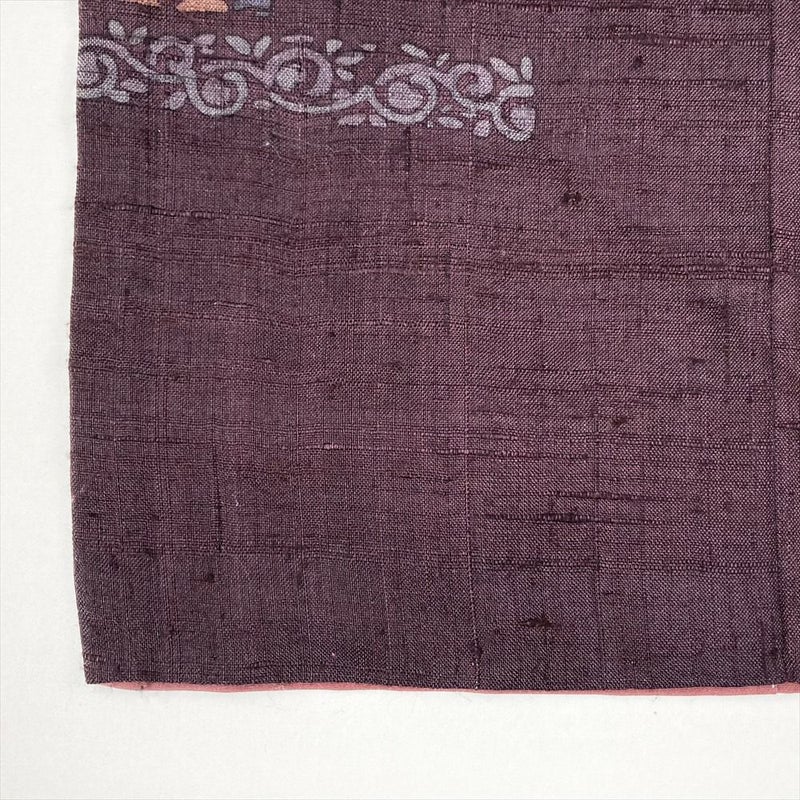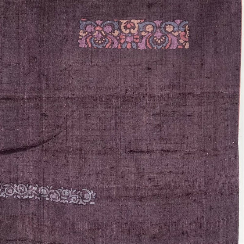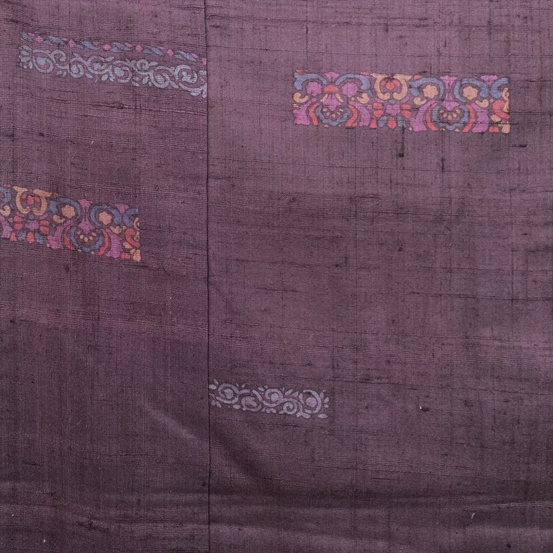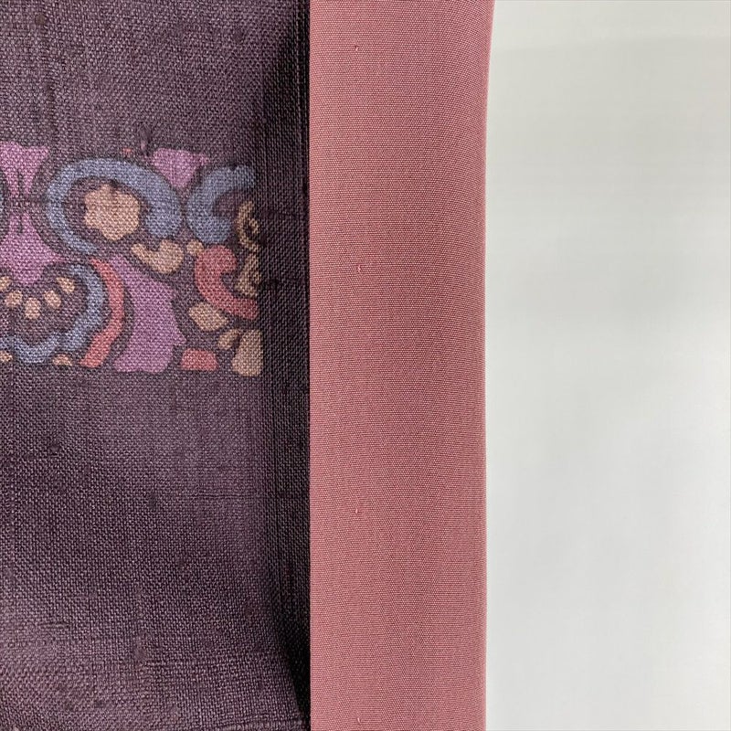 【色柄】小豆色 紫 カジュアル 紬地 染め 花 蔓 オリエンタル模様