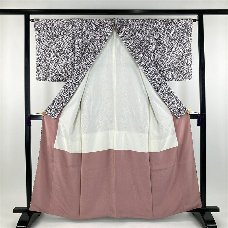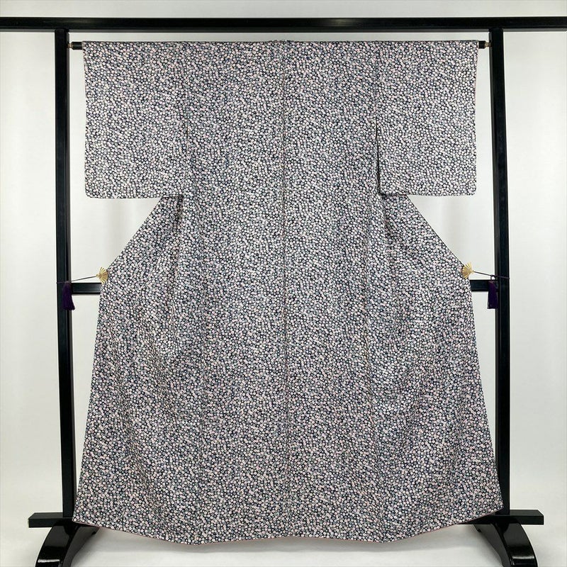 (中古) 小紋 黒色 カジュアル 染め 梅尽くし 袷【身丈】156.5cm【裄丈】64cm