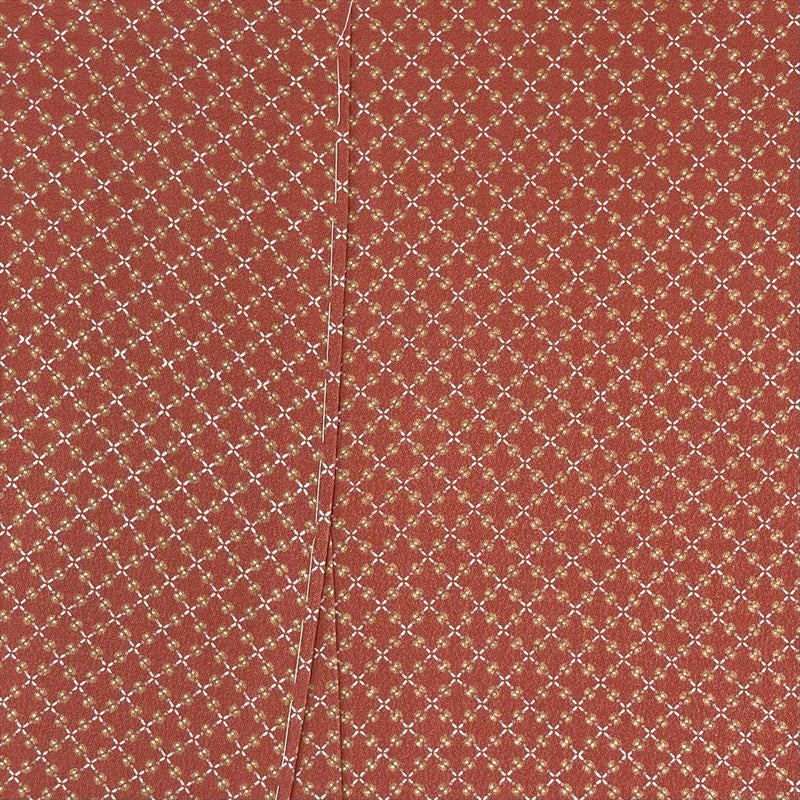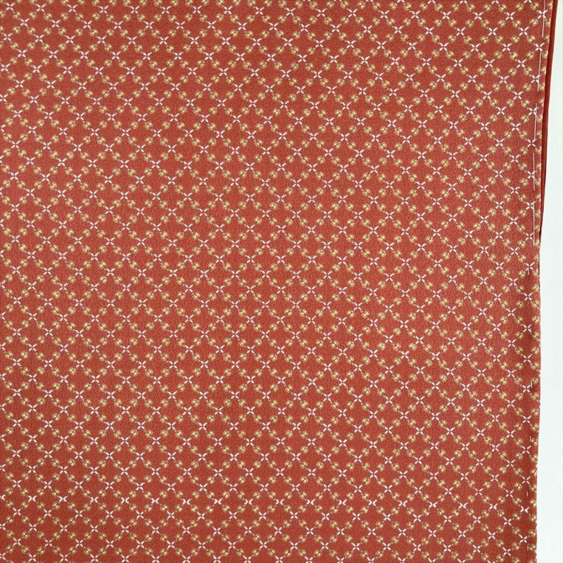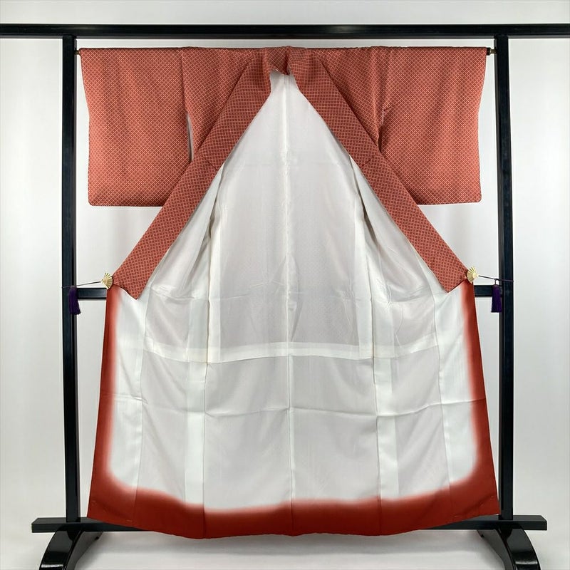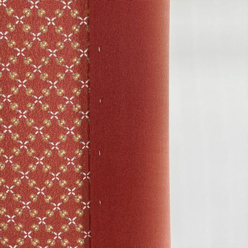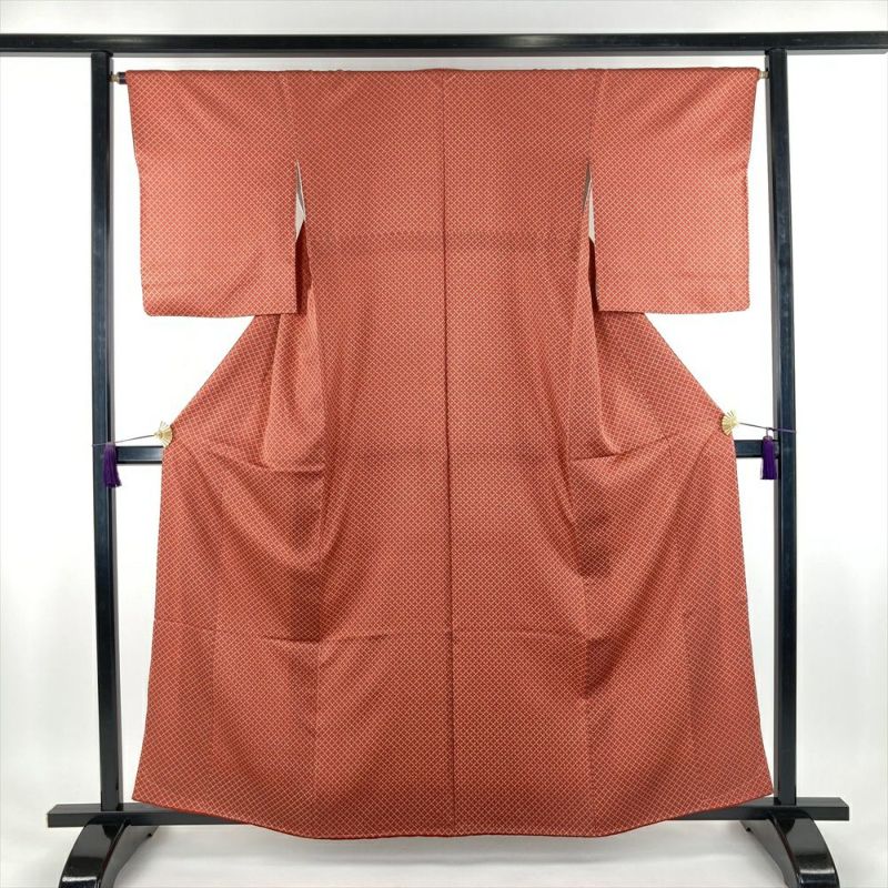 (中古) 小紋 オレンジ 柿色 カジュアル 染め 斜め格子 小花 袷【身丈】155cm【裄丈】66cm