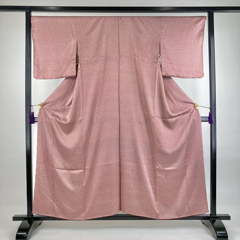 (中古) 江戸小紋 臙脂 ピンク カジュアル あられ 伊勢型 袷 SS【身丈】153.5cm【裄丈】67.5cm