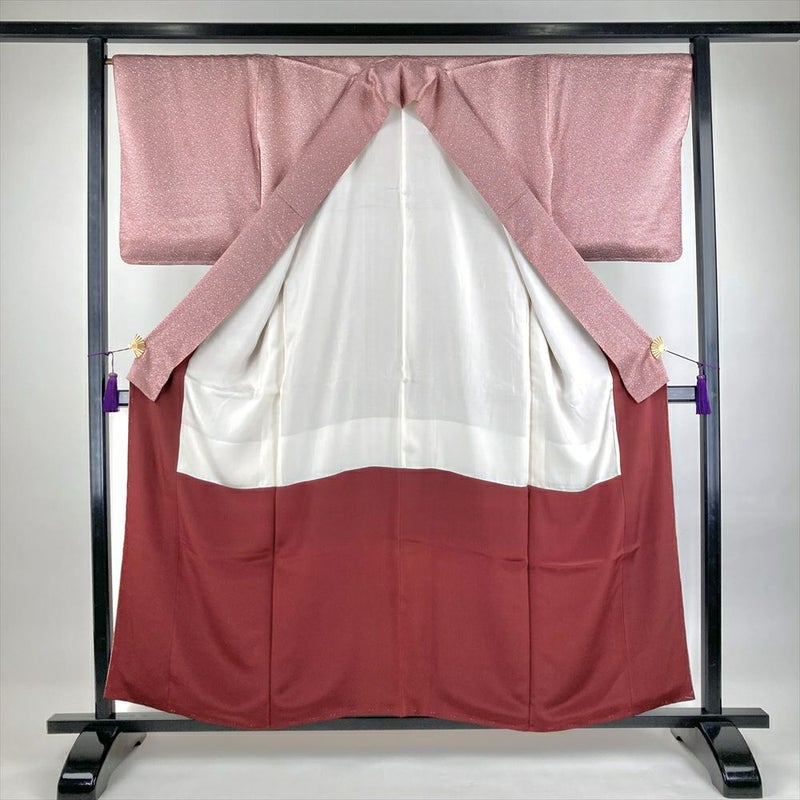 【色柄】臙脂 ピンク カジュアル あられ 伊勢型 袷