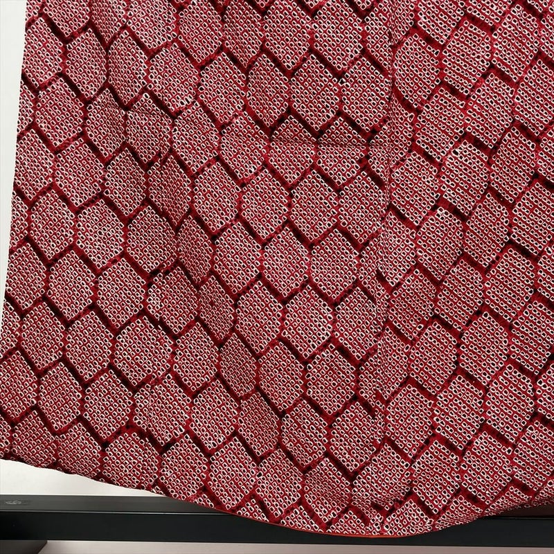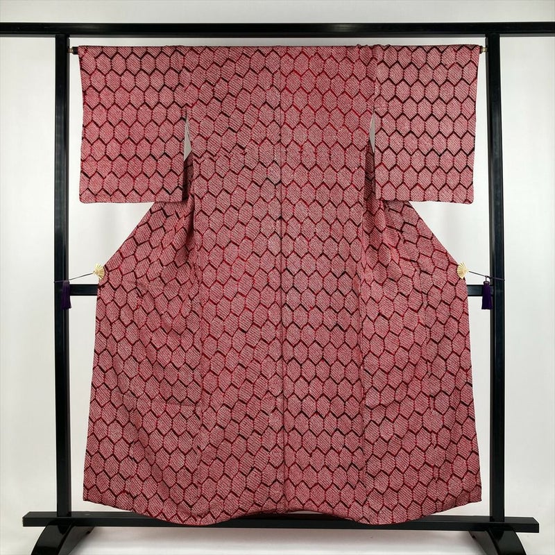 (中古) 小紋 赤色 カジュアル 染め 絞り鹿の子 亀甲 袷【身丈】150cm【裄丈】66cm