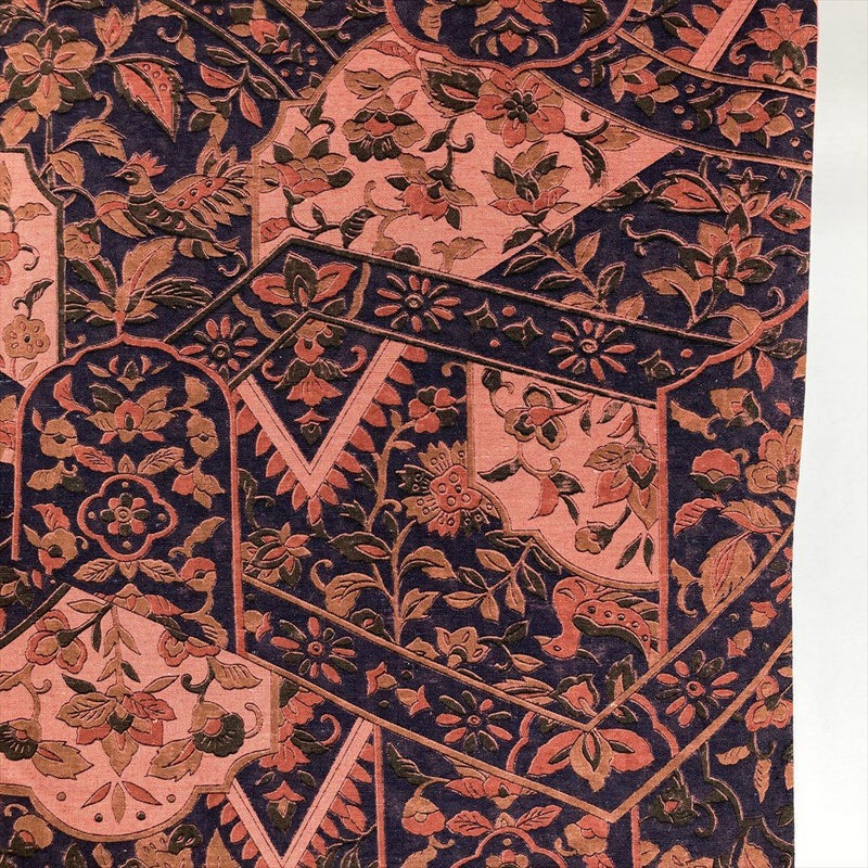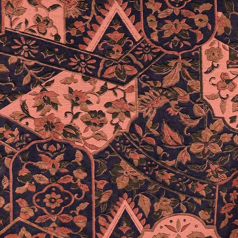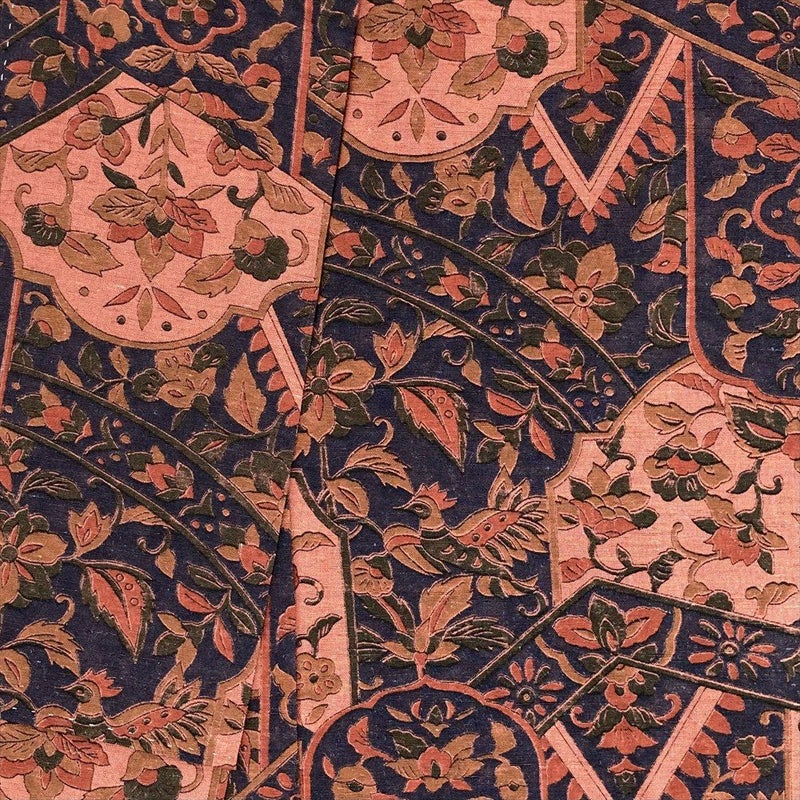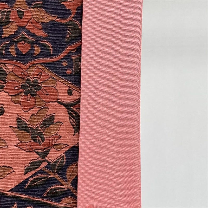 【色柄】紺 ピンク カジュアル 紬地 染め 更紗調