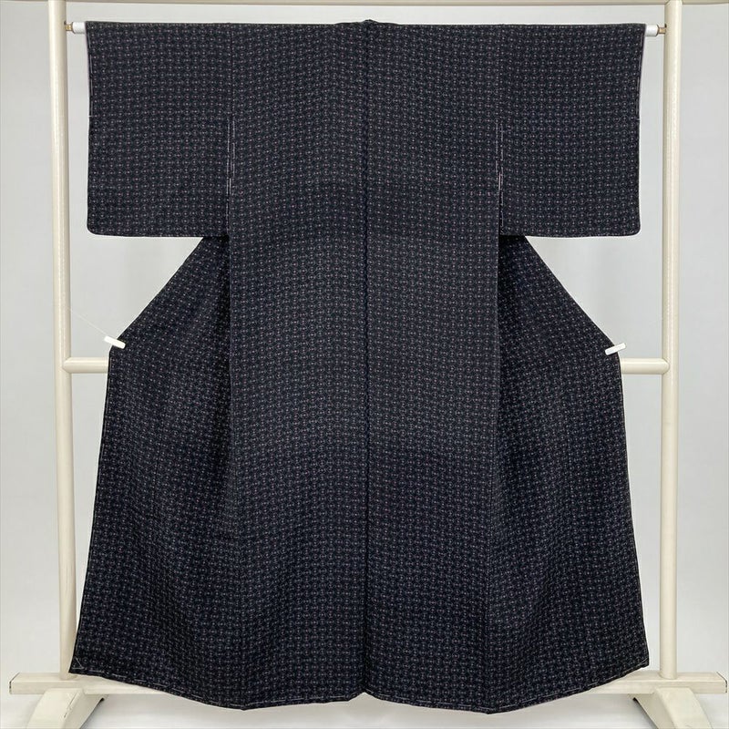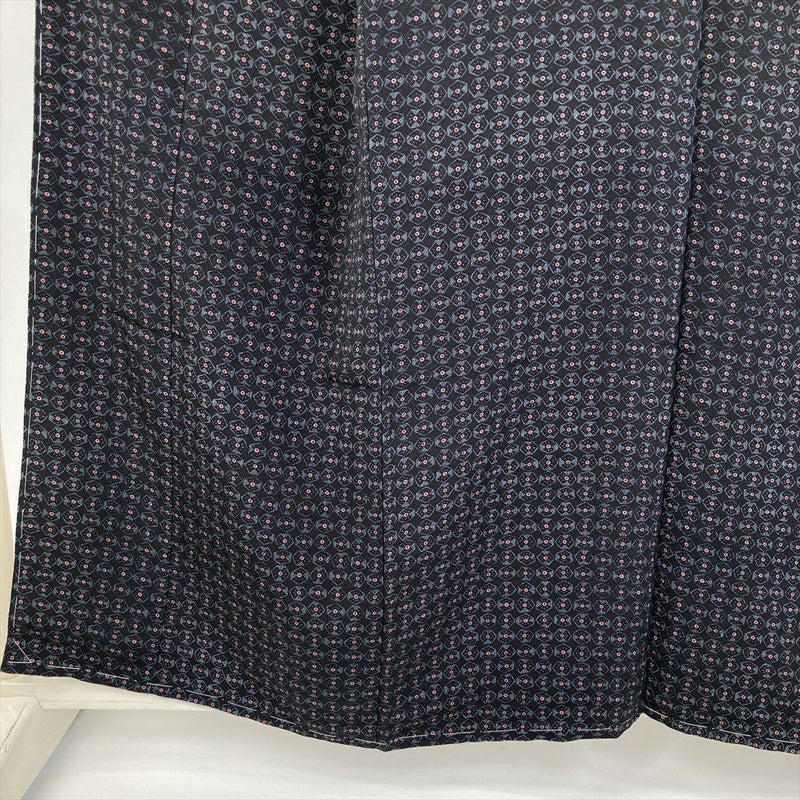 (中古) 小紋 墨黒 カジュアル 抽象柄 袷 絹 【身丈】151cm【裄丈】63.5cm