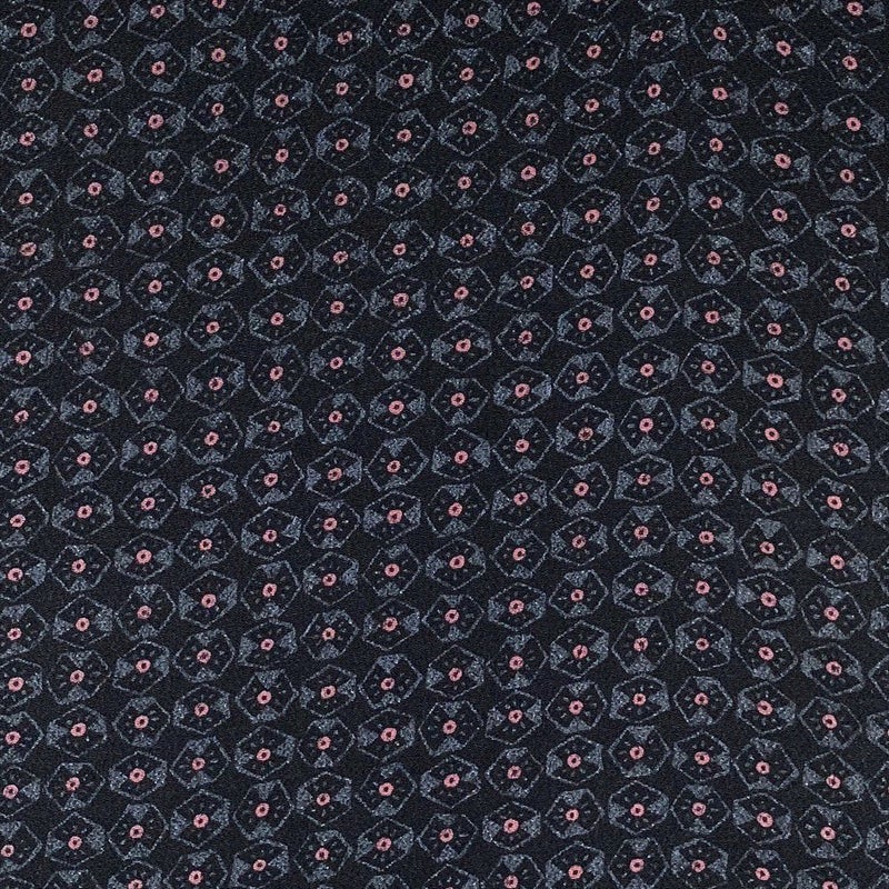幾何学的なパターン柄が映える、モダンな縮緬小紋です。