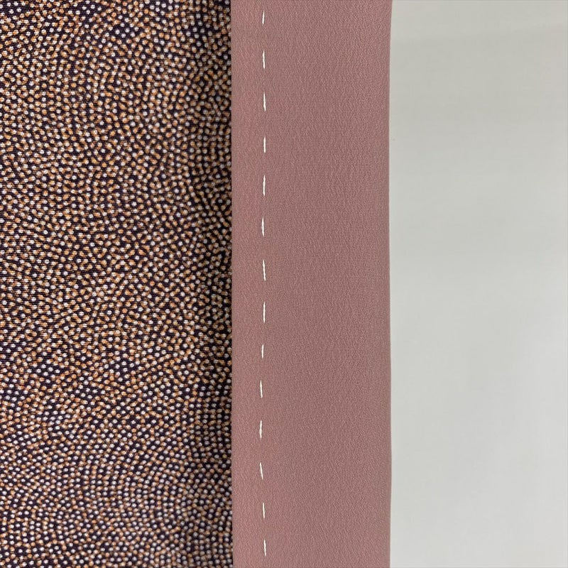 小紋は、柄を繋げず同じ柄が繰り返し染められています。 柄は大小あるものの一目見て分かる程度の大きさで、カジュアルなお出かけや柄付けによって少しおしゃれをしていきたい場面など巾広いシーンでお楽しみいただけます。裏地に糸目がでています。保存臭がややございます。胴裏にシミ汚れがございます。