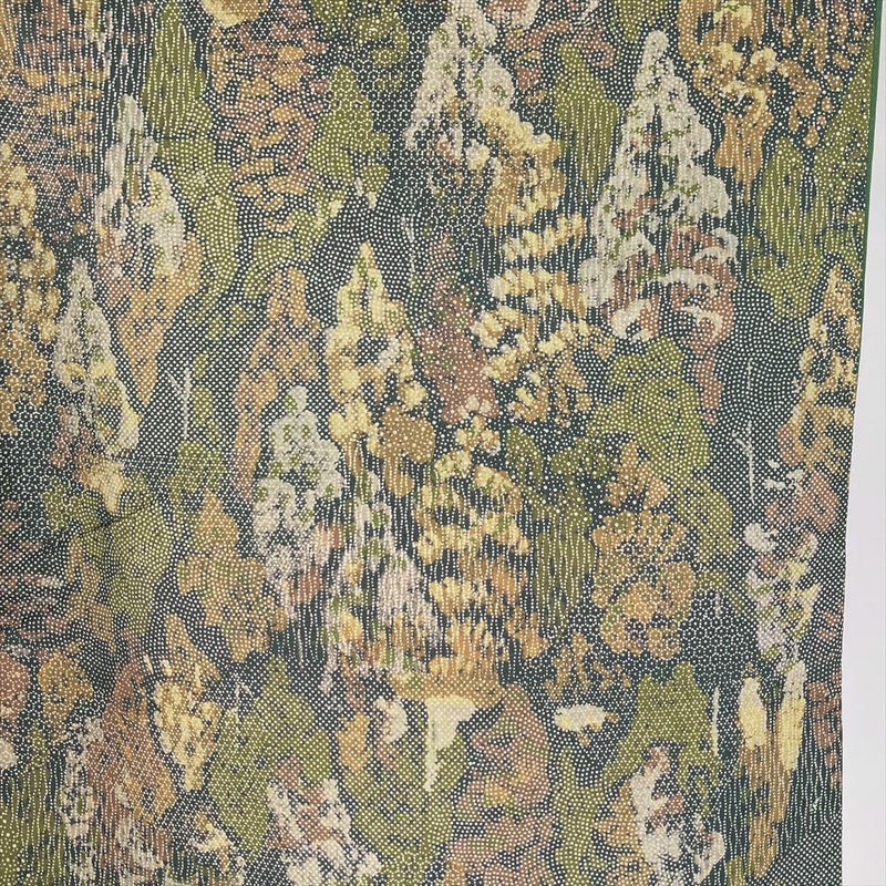 【色柄】緑 カジュアル 紬地 染め 木立 伊勢型調