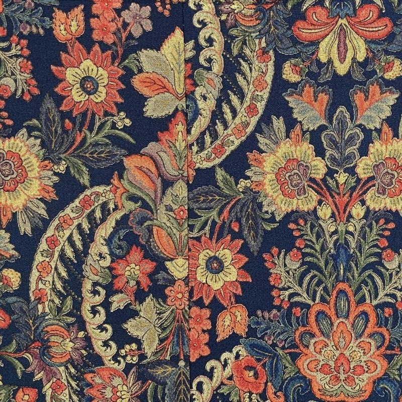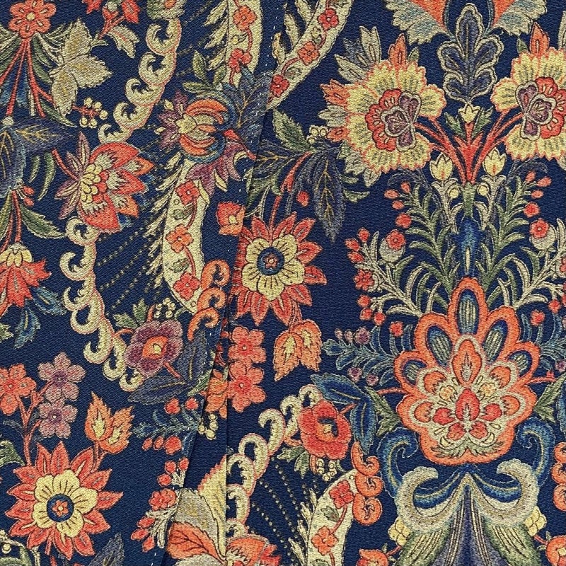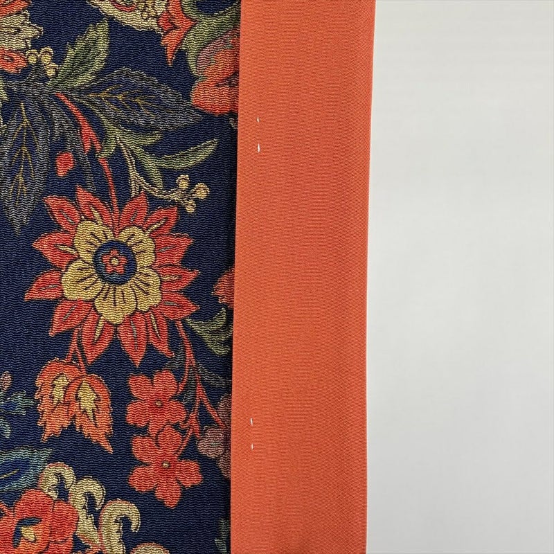 【色柄】鉄紺 カジュアル ちりめん 染め 更紗 オリエンタル調