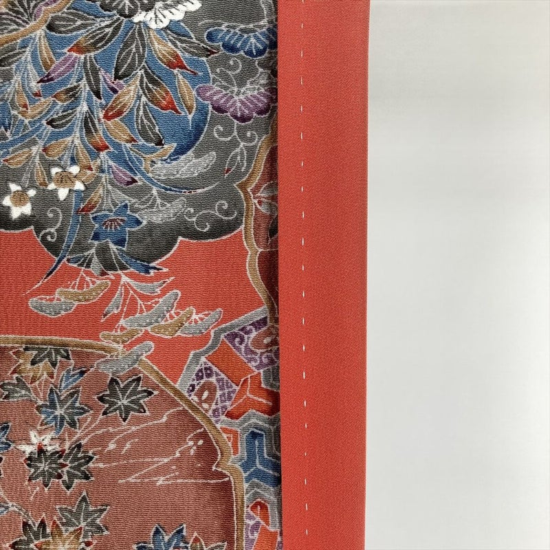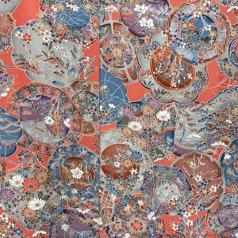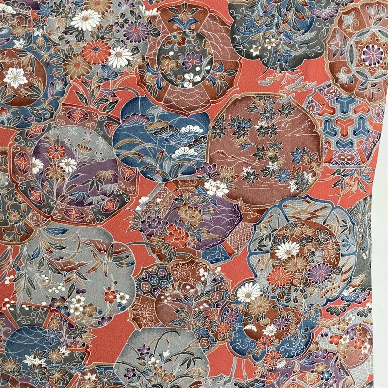 【色柄】濃珊瑚色 ピンク 紫 カジュアル ちりめん 染め 絵皿 四季花