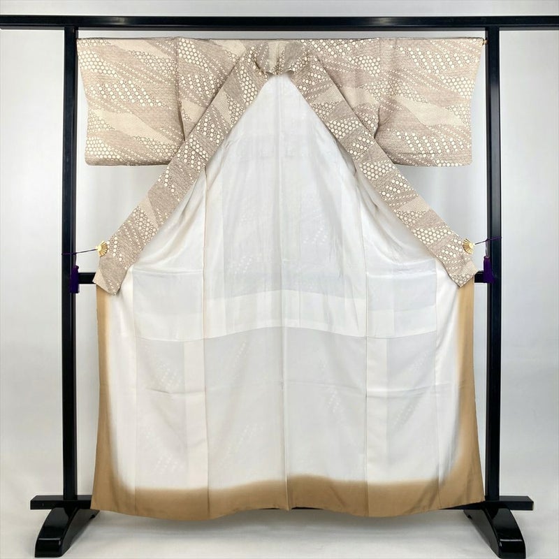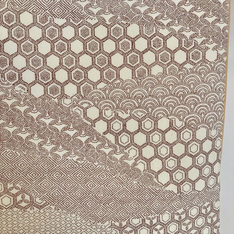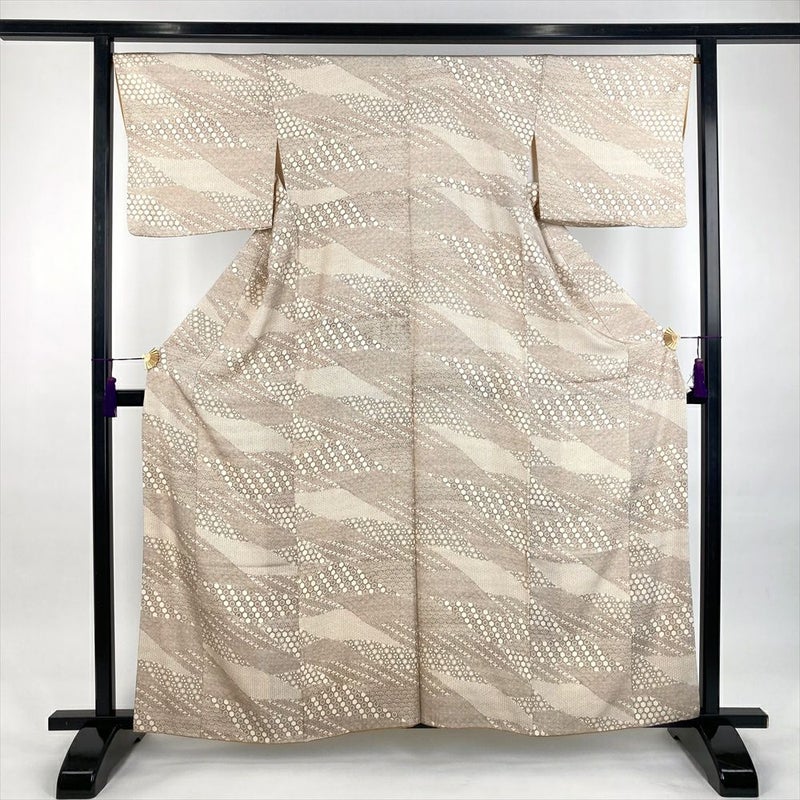 (中古)小紋 生成り カジュアル 染め 伊勢型調 吉祥文 袷 S【身丈】156cm【裄丈】68cm