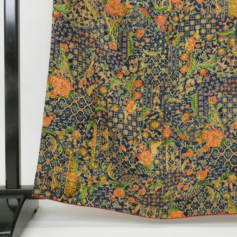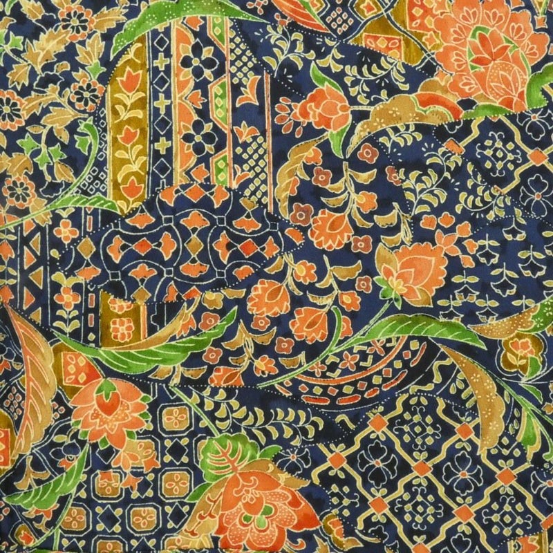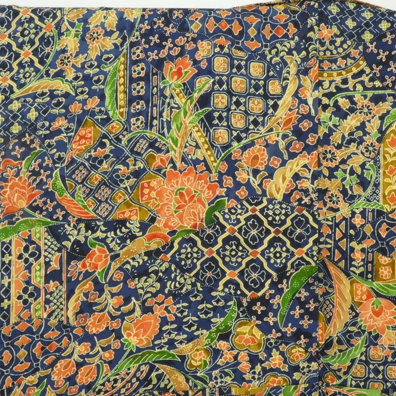 【色柄】紺地 更紗 型染