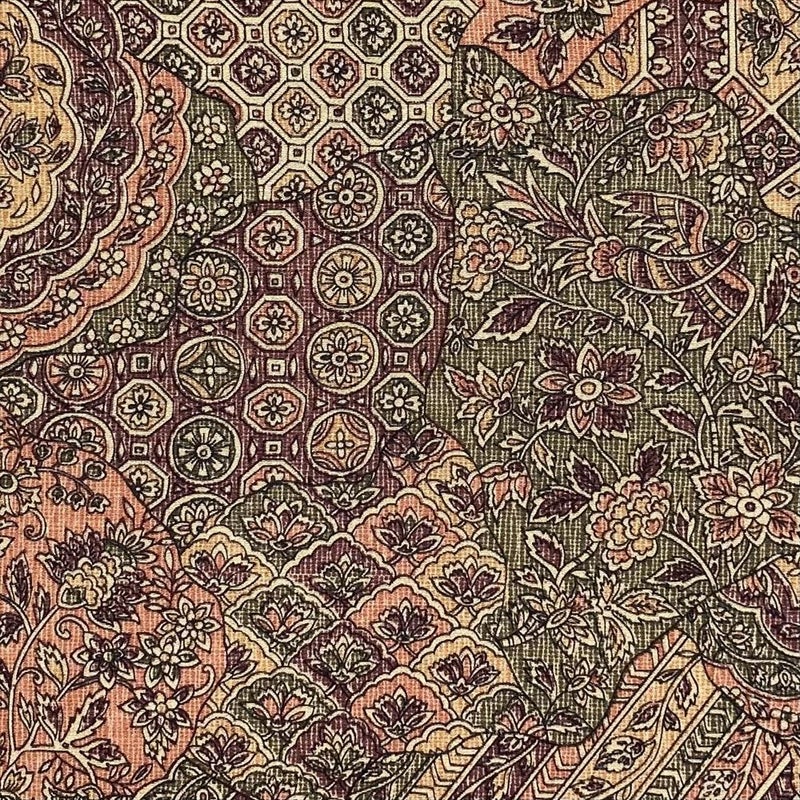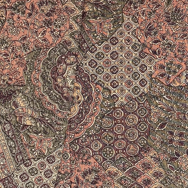 【色柄】茶色 カジュアル ちりめん 染め 更紗調