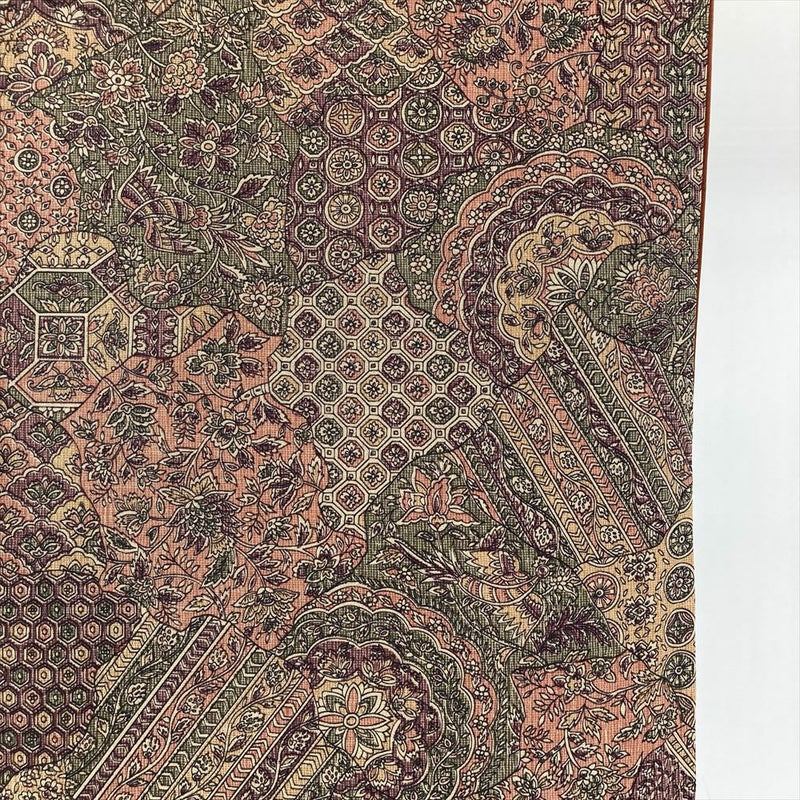 華やかで、どこか懐かしい、異国情緒が漂うデザインは、エキゾチックな魅力で多くの人々を魅了します。緻密な文様や鮮やかな色彩が、着姿を華やかに彩ります。 ワードローブの定番として活躍します。また流行に左右されにくいデザインですので、長くご愛用頂けます。保存臭がややございます。