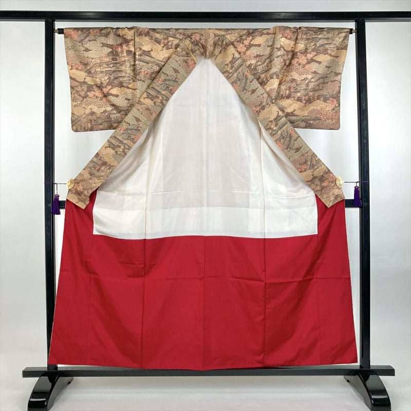 小紋は、柄を繋げず同じ柄が繰り返し染められています。 柄は大小あるものの一目見て分かる程度の大きさで、カジュアルなお出かけや柄付けによって少しおしゃれをしていきたい場面など巾広いシーンでお楽しみいただけます。保存臭がややございます。