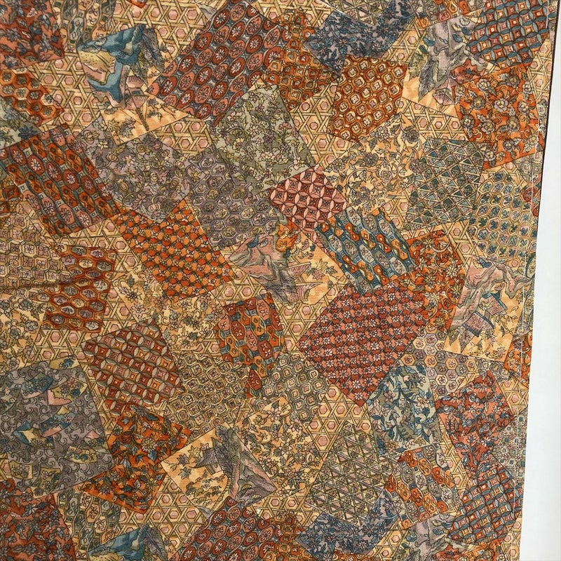 【色柄】薄橙 オレンジ カジュアル 紬地 染め 御帳 四季花 オリエンタル