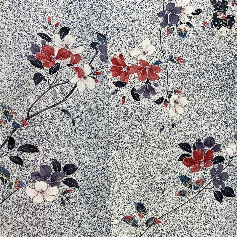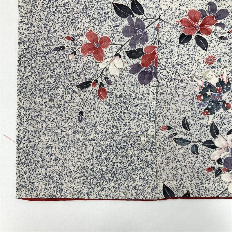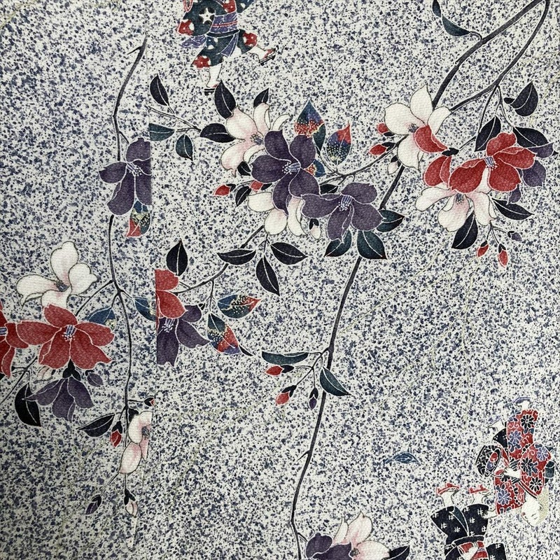 【色柄】白 青 グレー カジュアル ちりめん たたき染め 金彩 わらし 椿