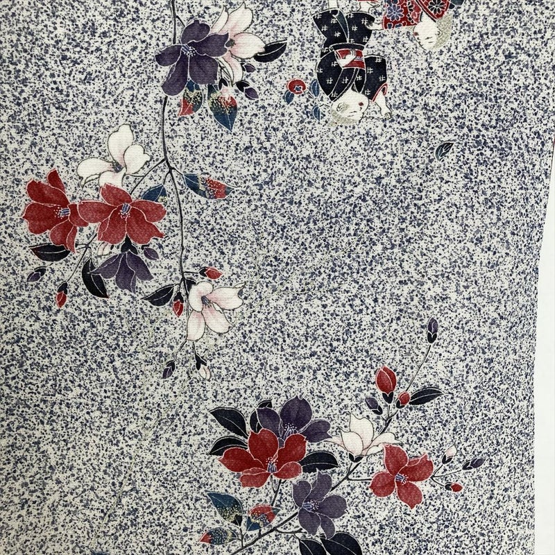 小紋は、柄を繋げず同じ柄が繰り返し染められています。 柄は大小あるものの一目見て分かる程度の大きさで、カジュアルなお出かけや柄付けによって少しおしゃれをしていきたい場面など巾広いシーンでお楽しみいただけます。保存臭がややございます。