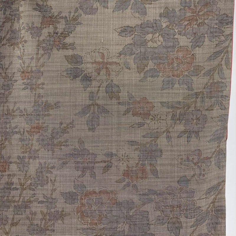 【色柄】薄焦げ茶 カジュアル 紬地 染め 花鳥