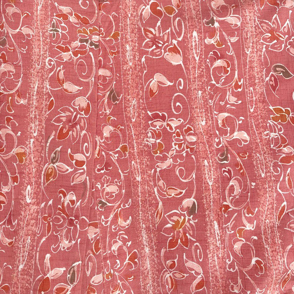 【色柄】珊瑚色 ピンク カジュアル 紬地 ろうけつ染め調 蔓花 オリエンタル模様