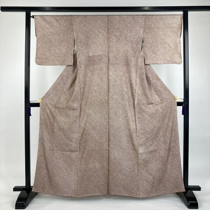 (中古)小紋 茶 カジュアル 染め 絞り 鹿の子 袷 S【身丈】158cm【裄丈】67cm