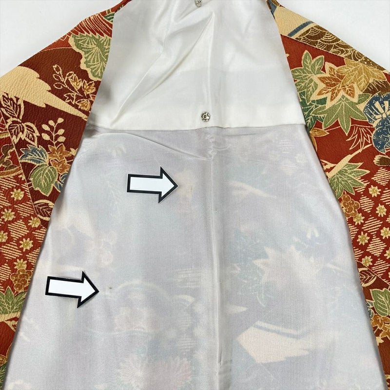 小紋は、柄を繋げず同じ柄が繰り返し染められています。 柄は大小あるものの一目見て分かる程度の大きさで、カジュアルなお出かけや柄付けによって少しおしゃれをしていきたい場面など巾広いシーンでお楽しみいただけます。保存臭がややございます。しつけ糸がございます。