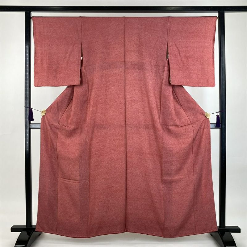 (中古)江戸小紋 カジュアル 赤 袷 菊尽くし 総柄 内田秀一 S【身丈】156.5cm【裄丈】66.5cm