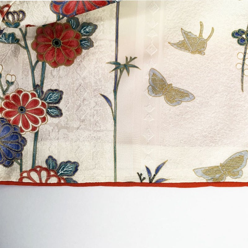 【色柄】白 カジュアル 地紋織り 蝶 菊 梅 草花