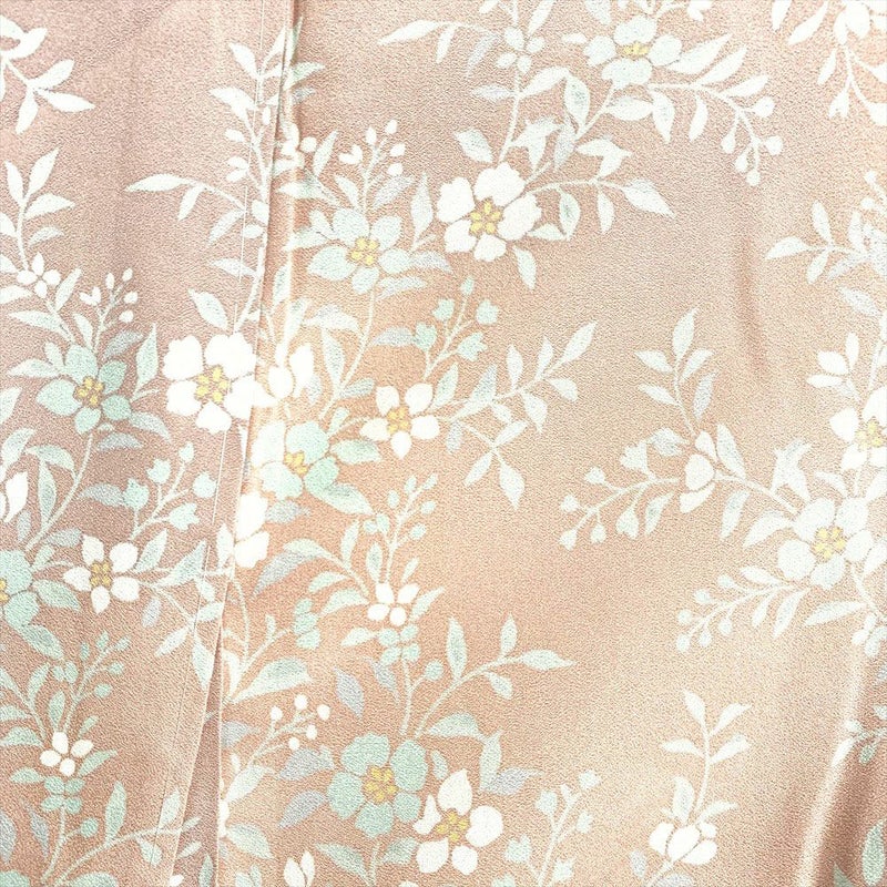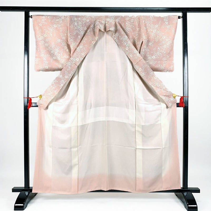 (中古)小紋 カジュアル ピンク 袷 総柄 草花 くすみぼかし加工 パステルカラー S【身丈】155.5cm【裄丈】66.5cm