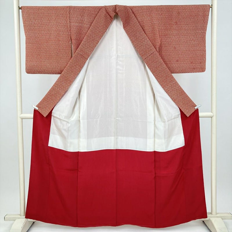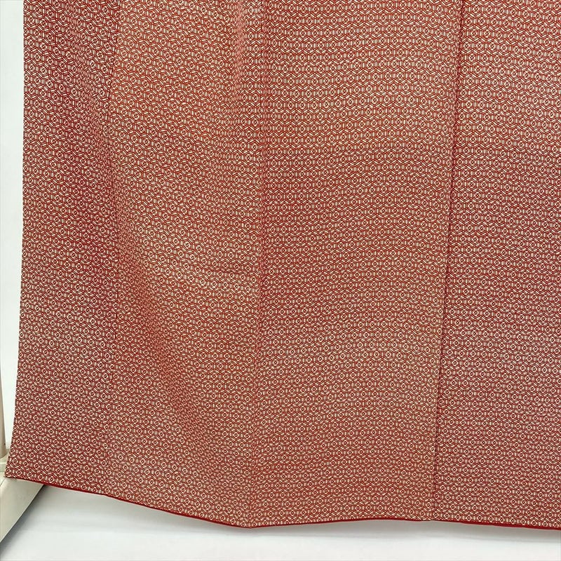 (中古) 小紋 赤 カジュアル 亀甲華文 袷 絹【身丈】156.5cm【裄丈】65.5cm