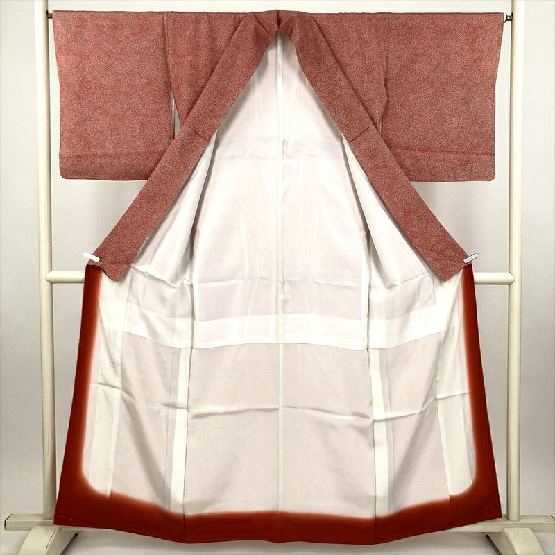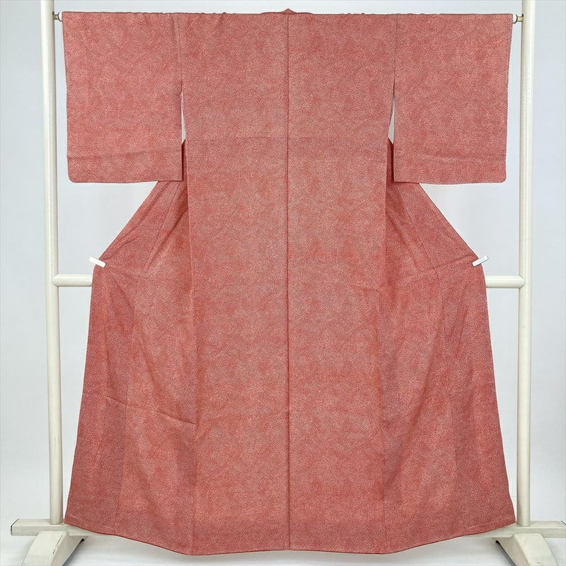 (中古) 小紋 赤 カジュアル 縮緬 抽象柄 袷 絹【身丈】154.5cm【裄丈】66.5cm