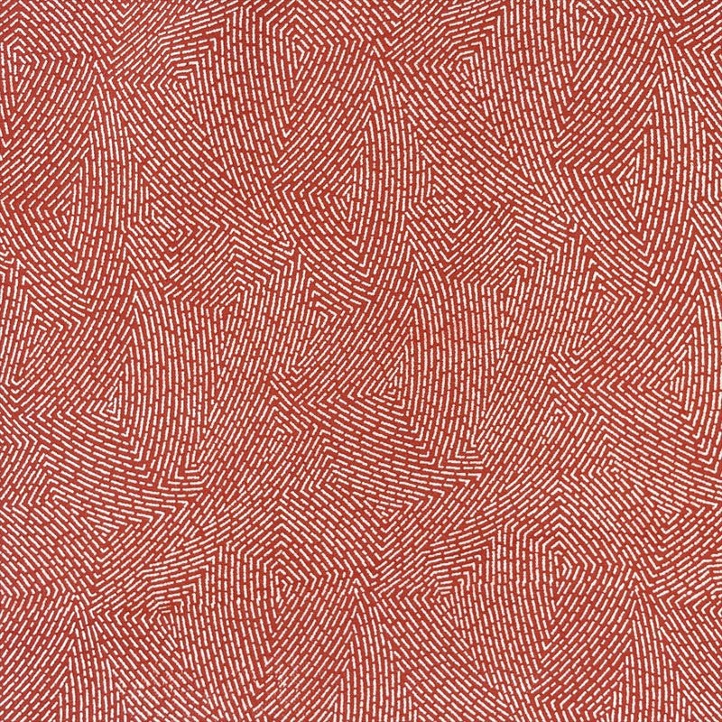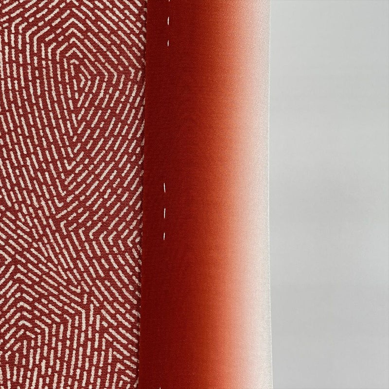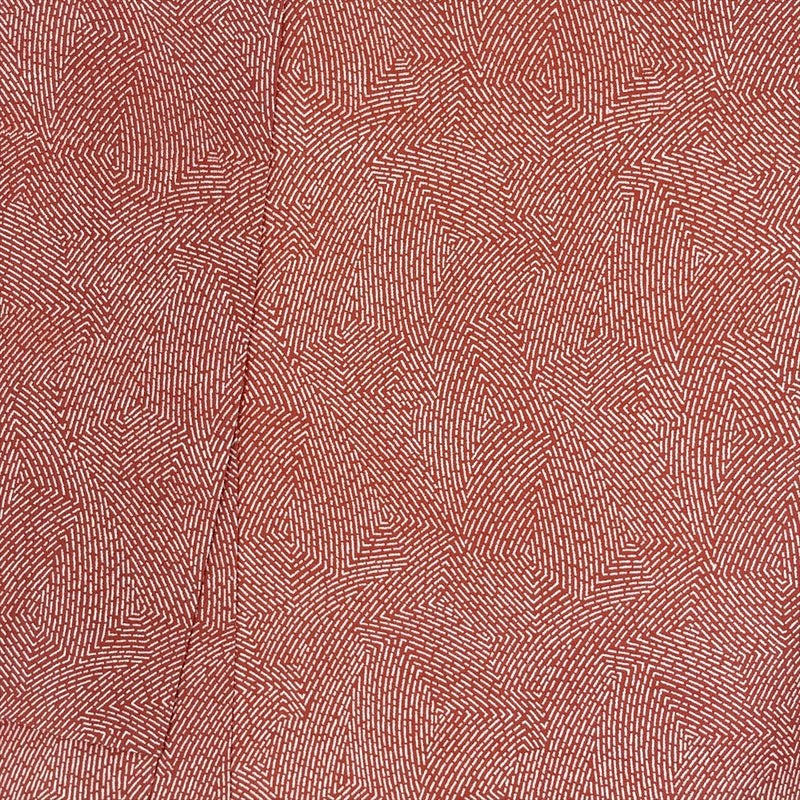 鮮やかな赤地に、抽象柄が映える縮緬の小紋です。