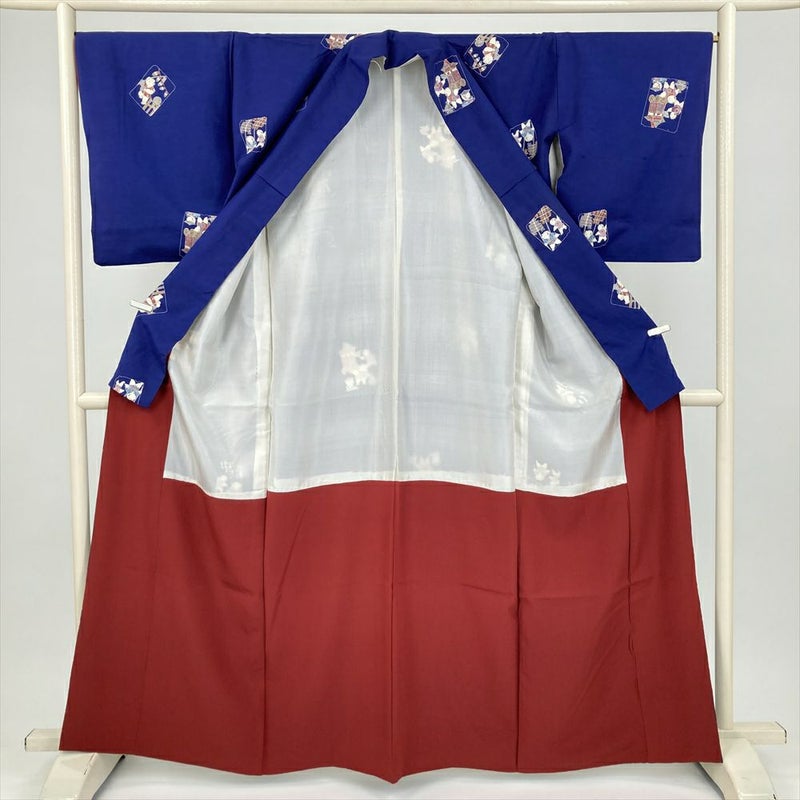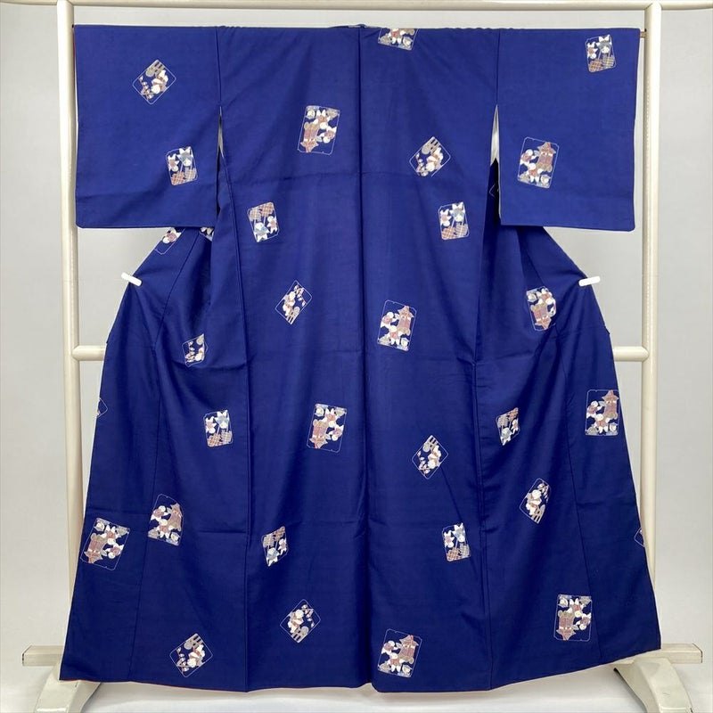 (中古) 小紋 紺 カジュアル 紬地 童 日本の祭り 袷 絹 【身丈】155cm【裄丈】68cm