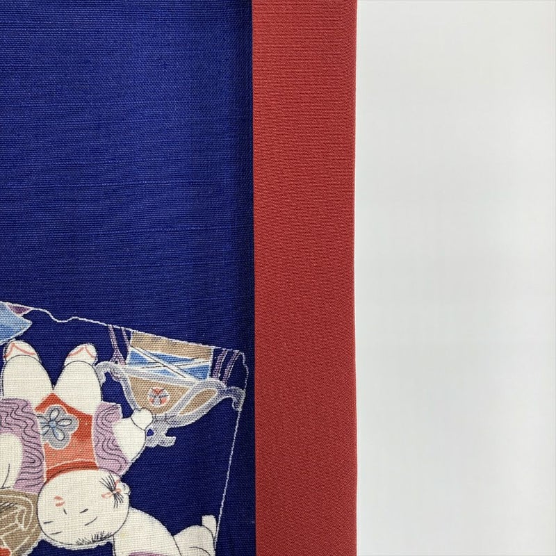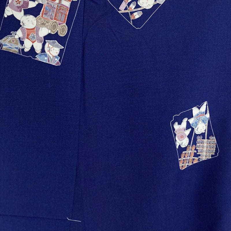 【色柄】紺 カジュアル 紬地 童 日本の祭り