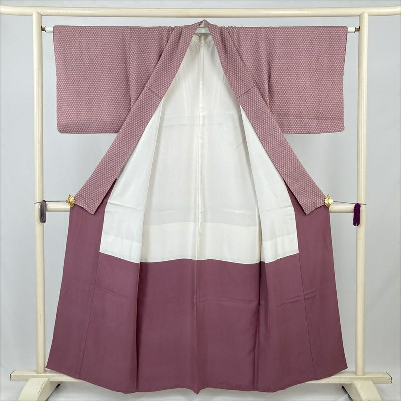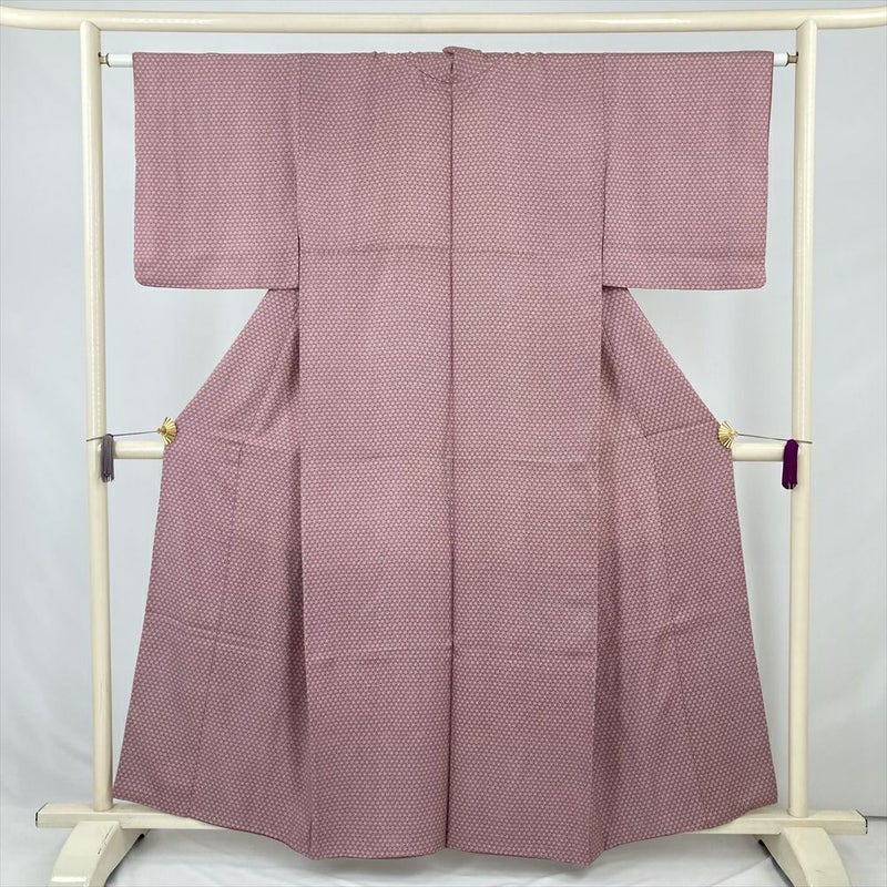 (中古) 小紋 紫 カジュアル 菊尽くし 袷 絹【身丈】150.5cm【裄丈】63cm