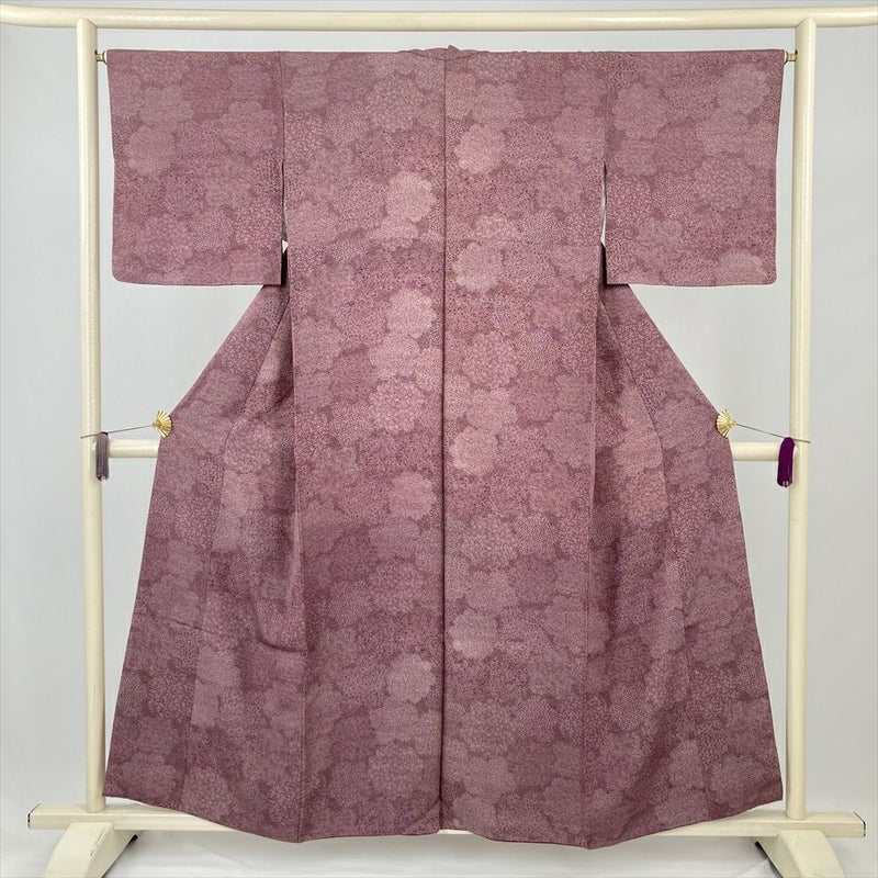 (中古) 小紋 紫 カジュアル 伊勢型 袷 絹【身丈】151cm【裄丈】66cm