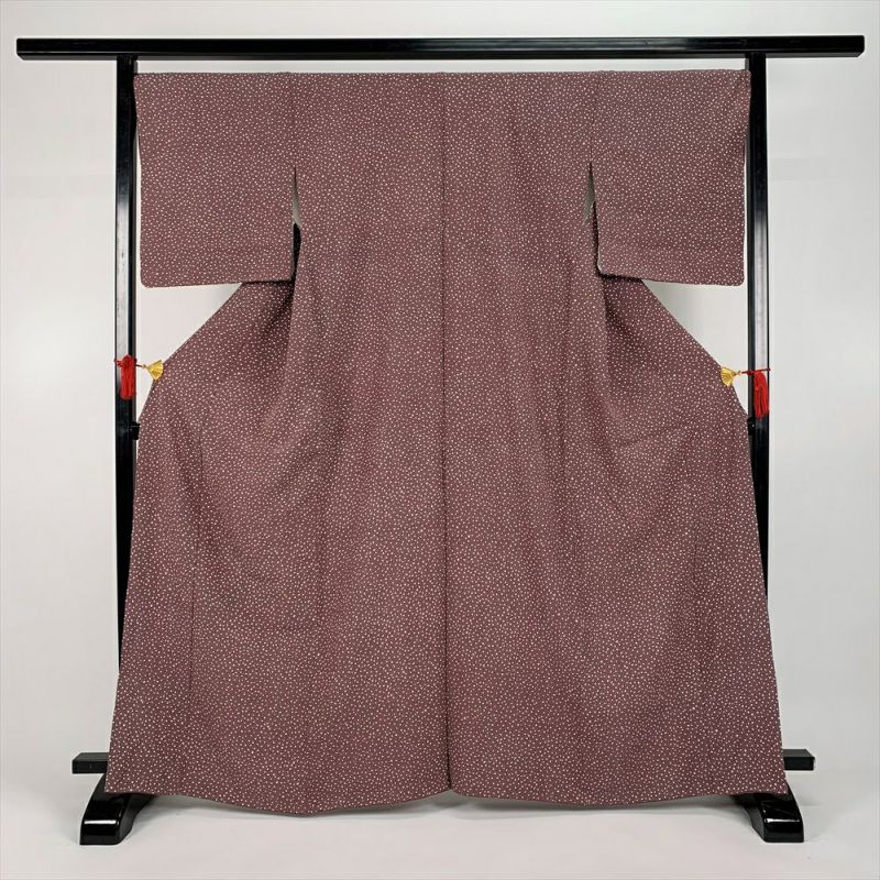 (中古)小紋 小豆色 カジュアル 縮緬 大小あられ 袷 M【身丈】161.5cm【裄丈】69.5cm