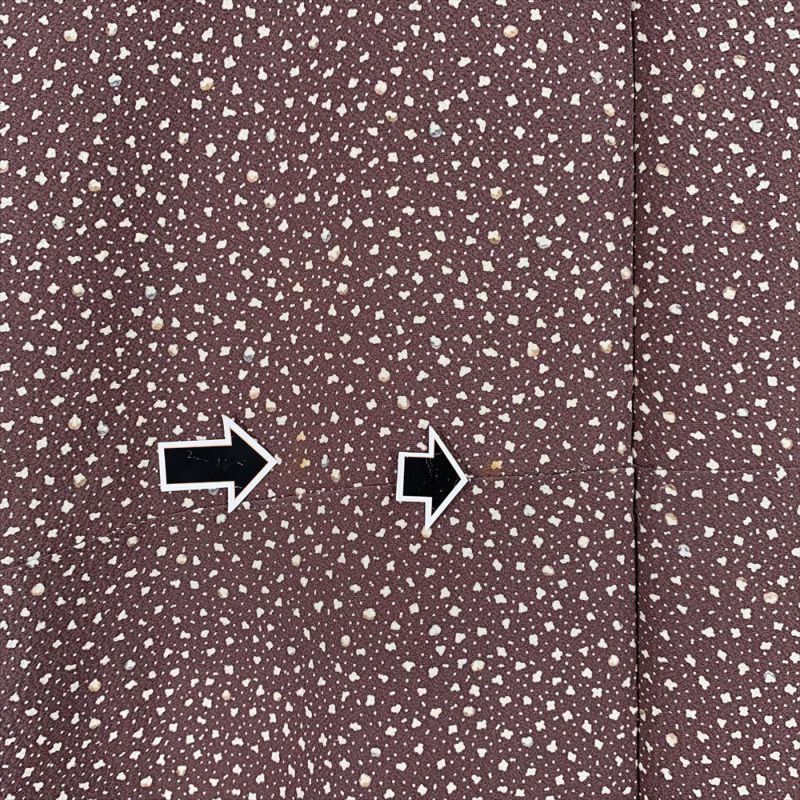 お茶会や食事会、散歩など、普段着として気軽にお使いただける小紋です。着付けも比較的簡単なので、着物初心者の方でも使いやすい柄です。上前と後ろ身頃と外袖と胴裏に茶色い汚れが複数、胴裏に黄色い汚れがございます。