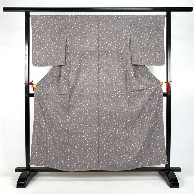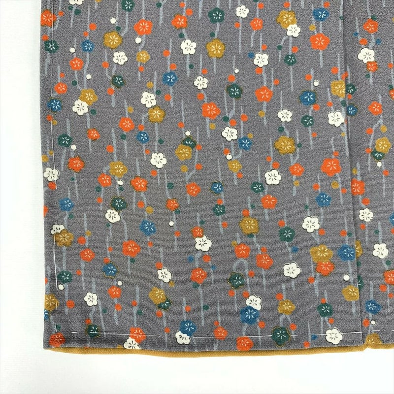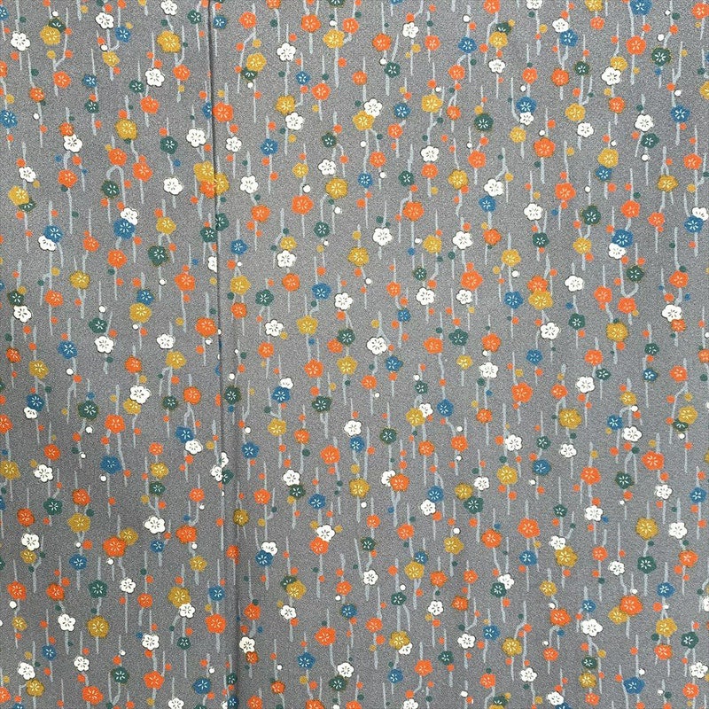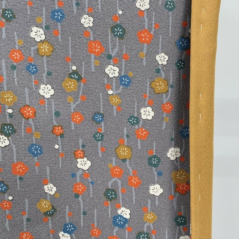 (中古)小紋 グレー カジュアル 梅柄 袷 SS【身丈】154.5cm【裄丈】67.5cm