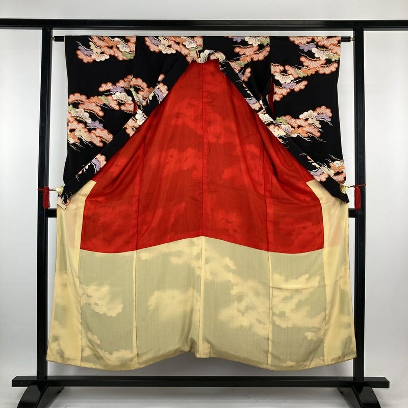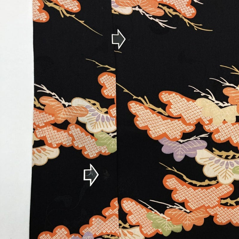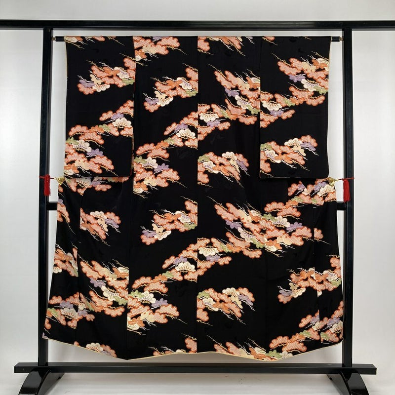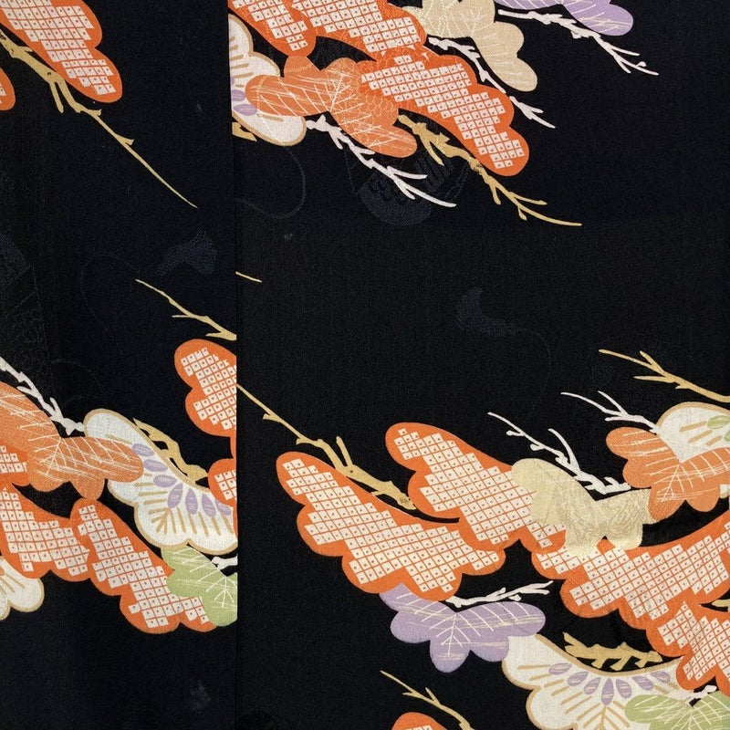 【色柄】黒 松 鹿の子 カジュアル ヴィンテージ 袷