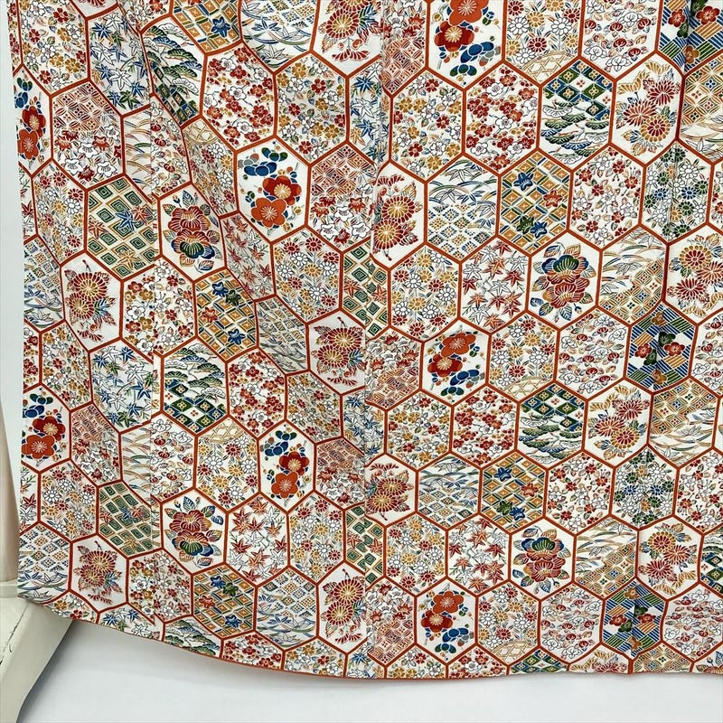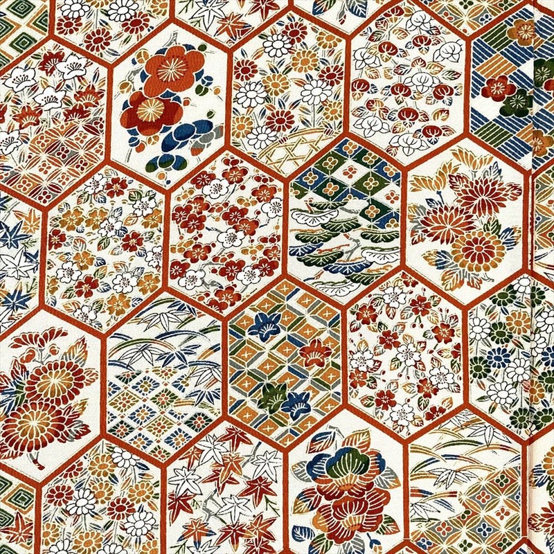 【色柄】白 柿色 オレンジ カジュアル 亀甲 四季花 吉祥文