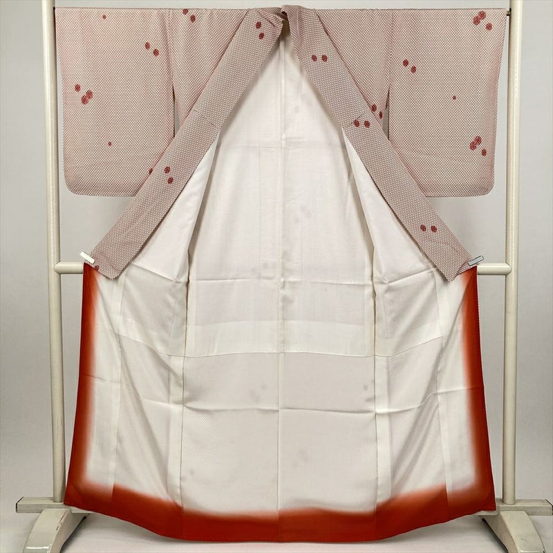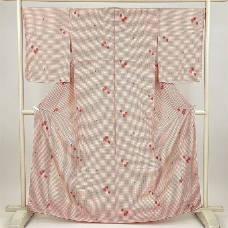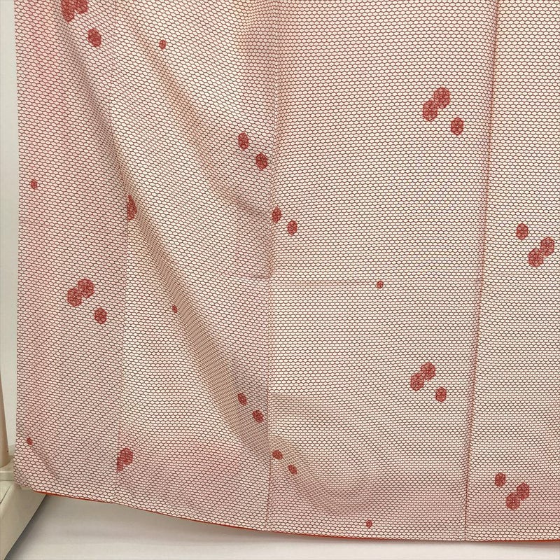 (中古) 小紋 赤 白 カジュアル 亀甲 袷 絹【身丈】157.5cm【裄丈】68cm
