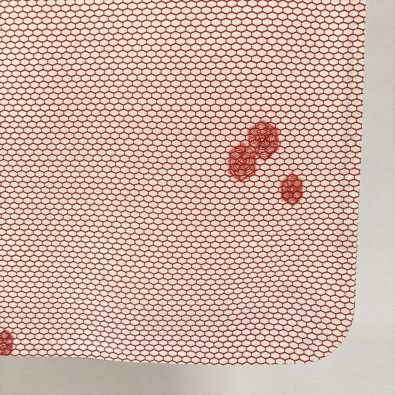 紅白のコントラストで亀甲文様を描いた総柄の小紋です。