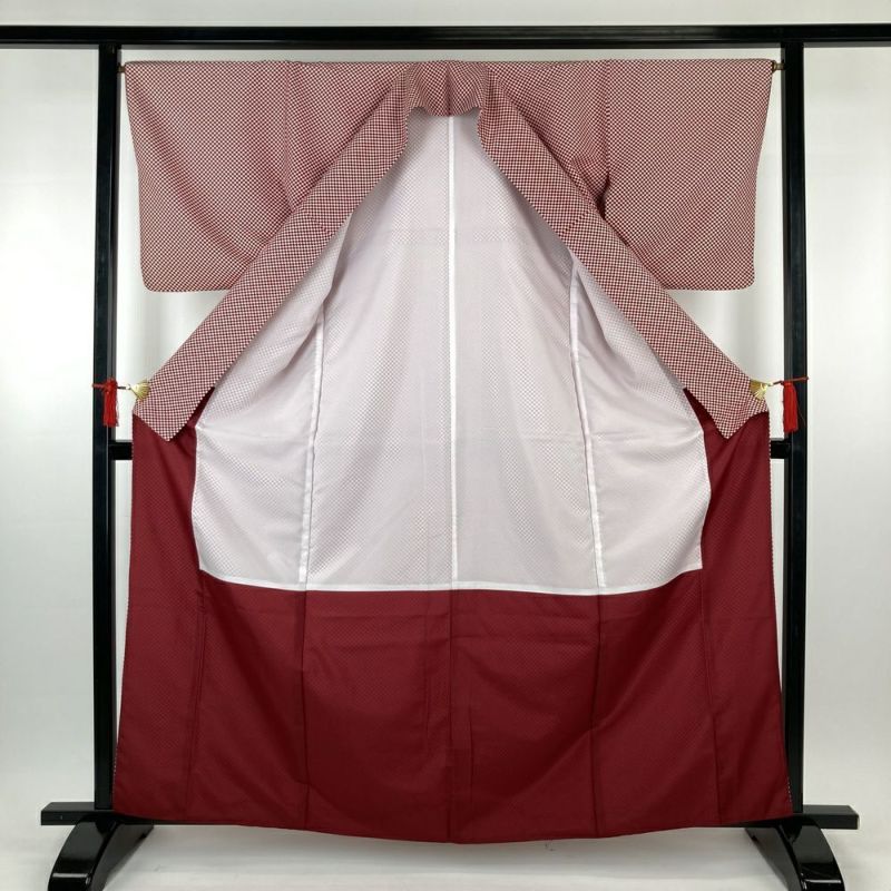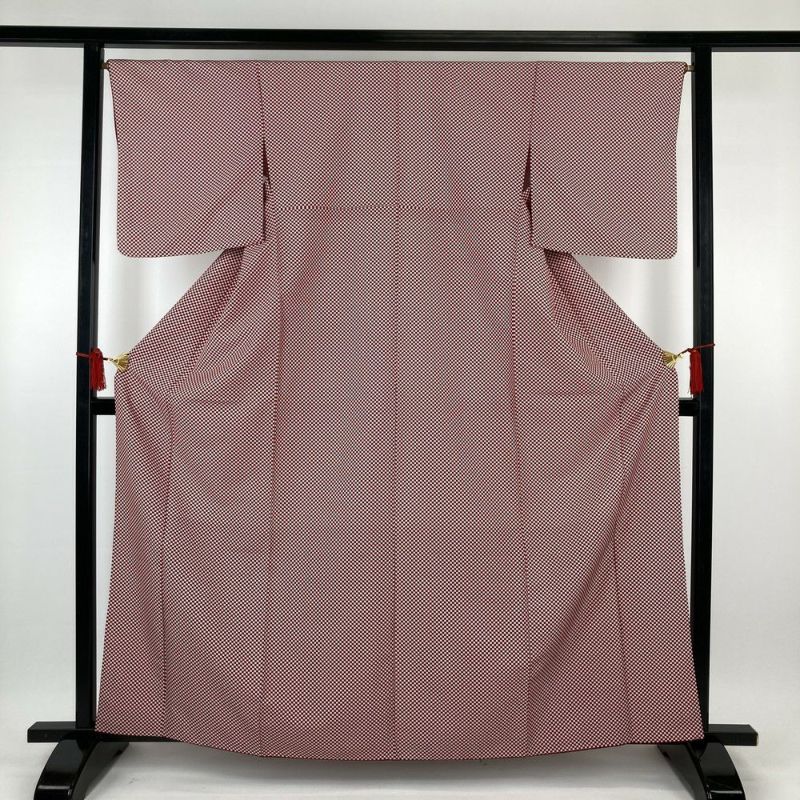 【色柄】赤紫 小市松 袷