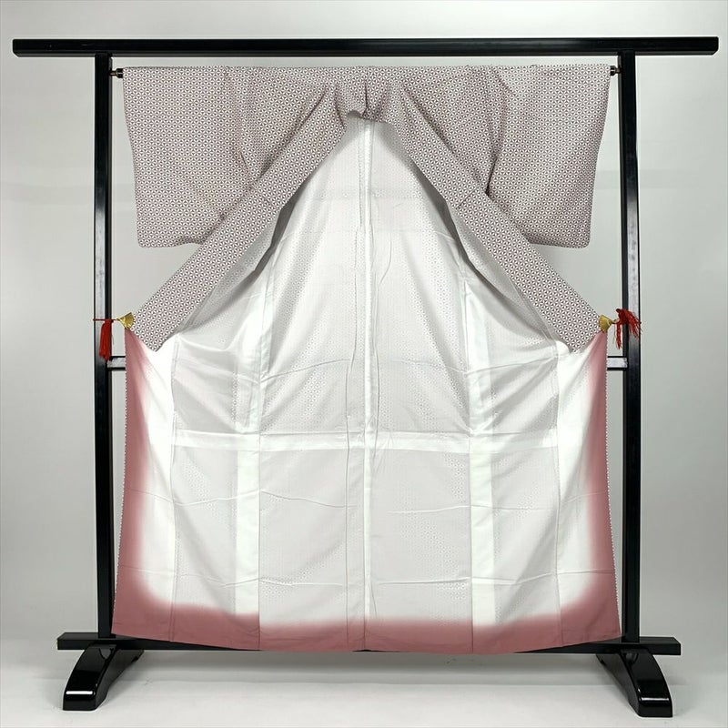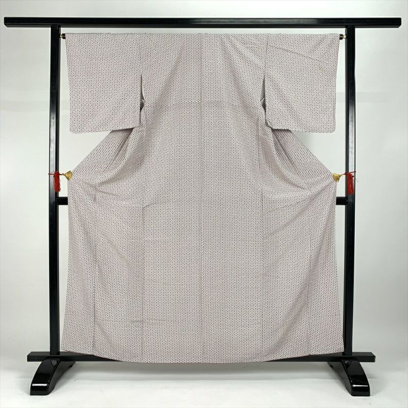 (中古)小紋 カジュアル 紫 袷 七宝柄 小花 未洗い S【身丈】159cm 【裄丈】66cm
