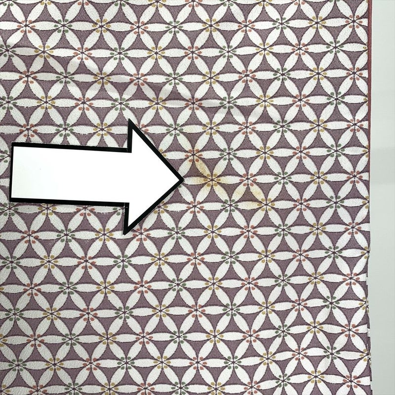 【状態ランクB】衿汚れ、右外袖・衿裏シミ、たるみあり。