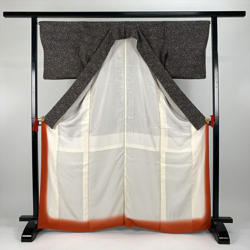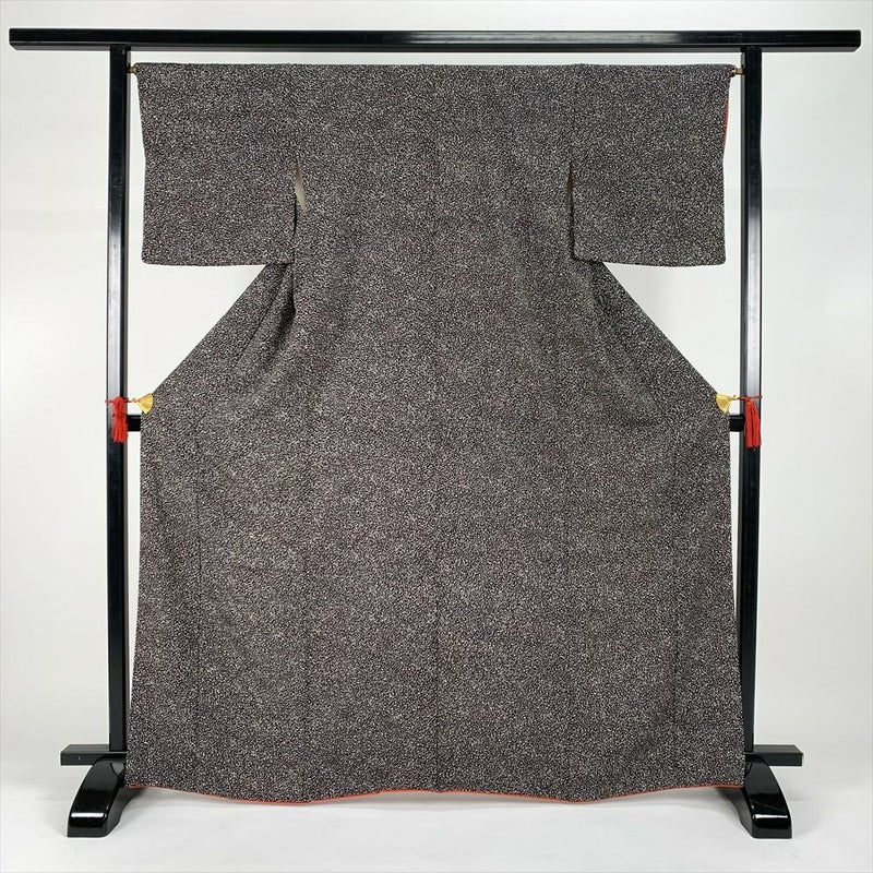(中古)小紋 カジュアル 黒 袷 たたき柄 モノトーン 未洗い M【身丈】163cm 【裄丈】66cm