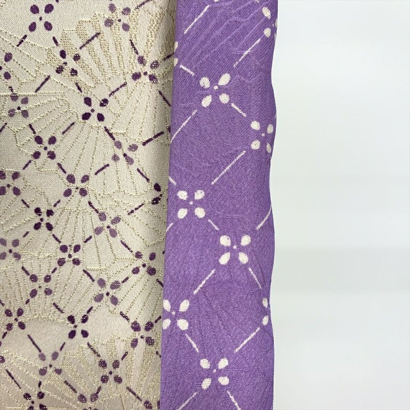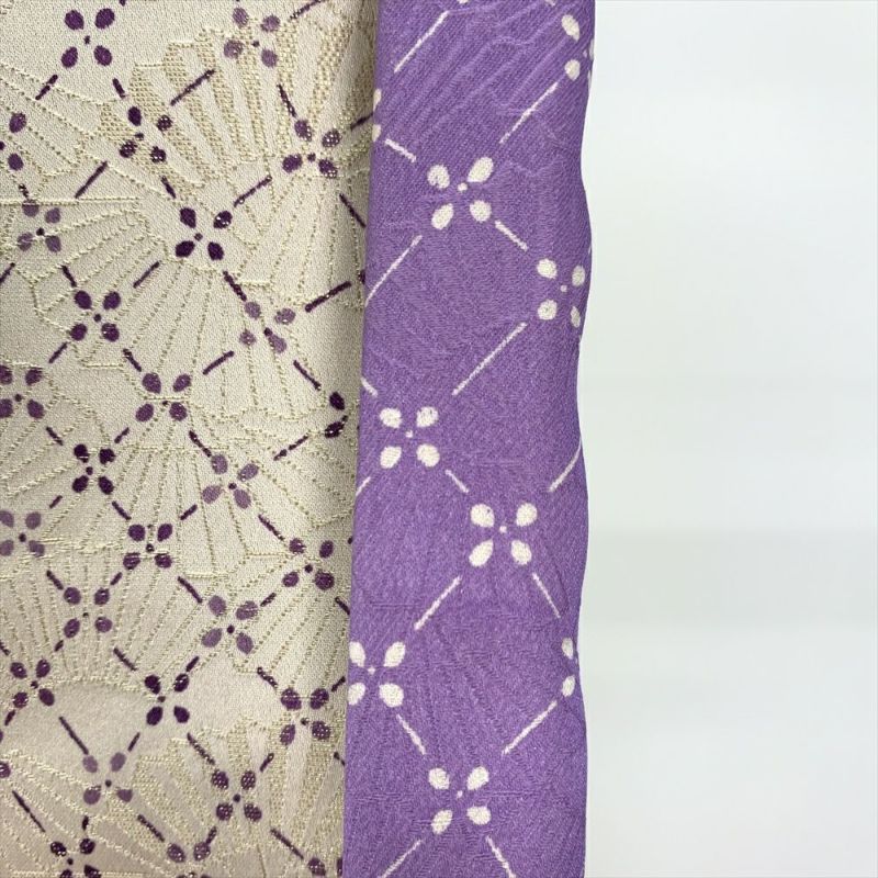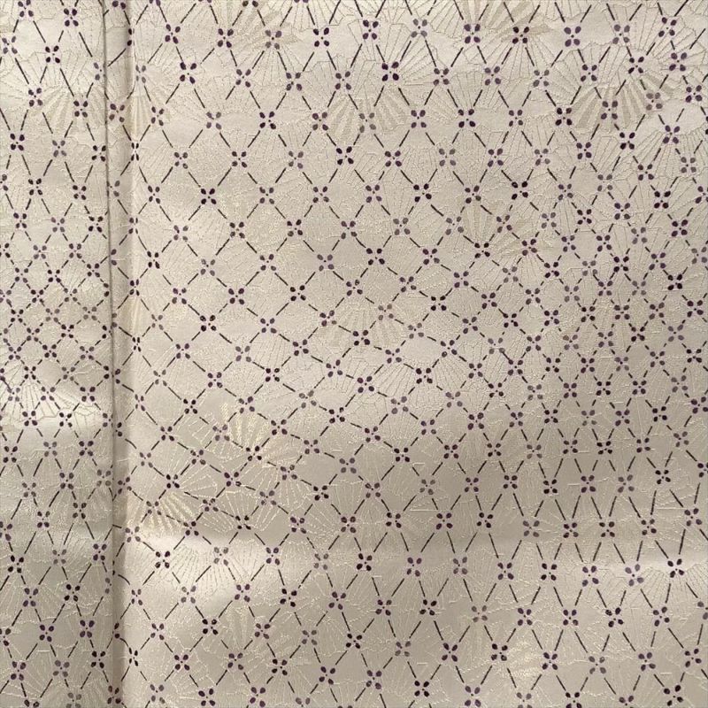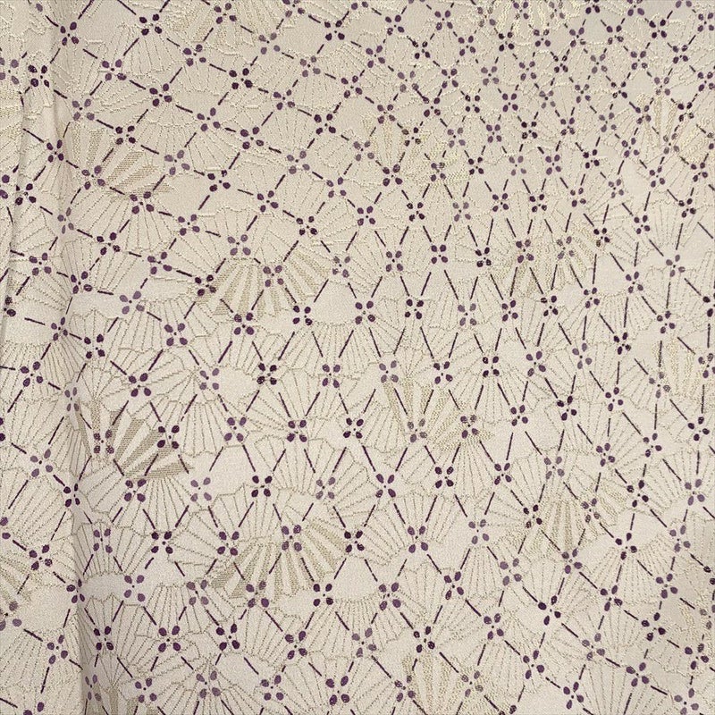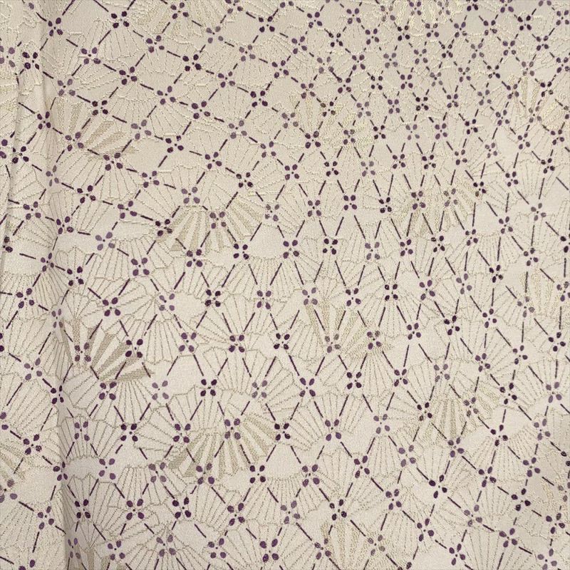 【色柄】ベージュ 白 金糸 地紋織り 小花